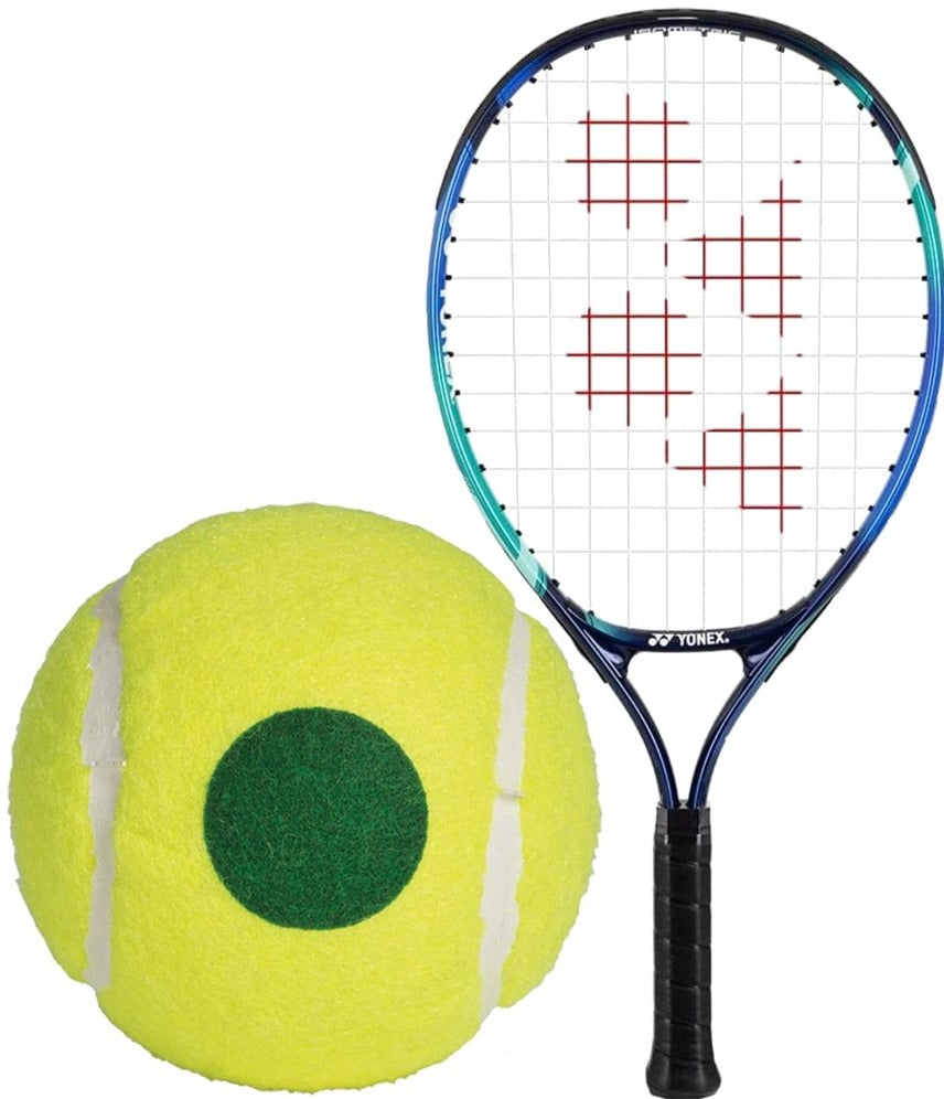This Yonex Junior Sky Blue Tennis Racquet Prestrung bundled w 3 Green Dot Tennis Balls combines confidence-building performance with stylish designs for beginner junior players.