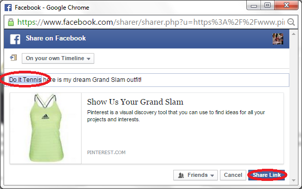 1. Share your tennis outfit pinboard via Facebook, tagging