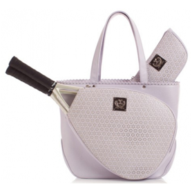 Ladies will love this stylish and super-functional new “designer tennis bag” from Court Couture. They have incorporated a beautiful design with perforated leather and scalloped edges in their Savanna tennis totes. There are a few different pale color-tones, like the lilac version of the Savanna tote. This bag has a feminine style and so much intricate detail you’ll even forget it’s made for tennis racquets. Don’t be fooled though, it’s a full-functioning tennis bag and can hold up to two tennis racquets and many other necessities on the tennis court.
