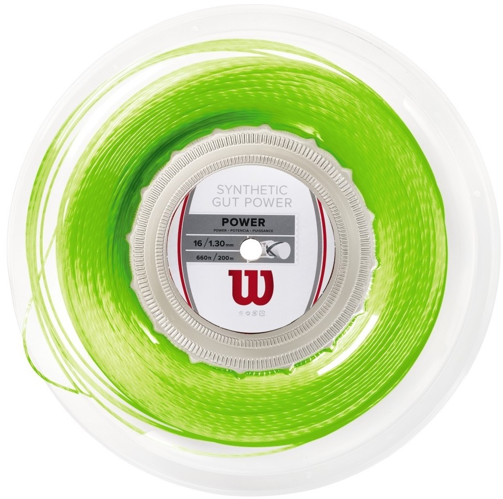 The Wilson Synthetic Gut Power 16g Lime Green Tennis String (Reel) provides enhanced feel for players looking for increased control and accuracy.