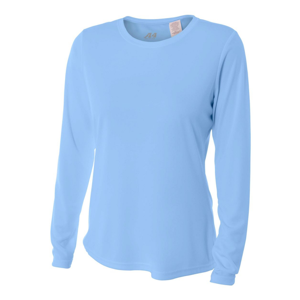 A4 Women's Performance Long-Sleeve Crew Neck Shirt (Light Blue) (Model #NW3002-LTB)