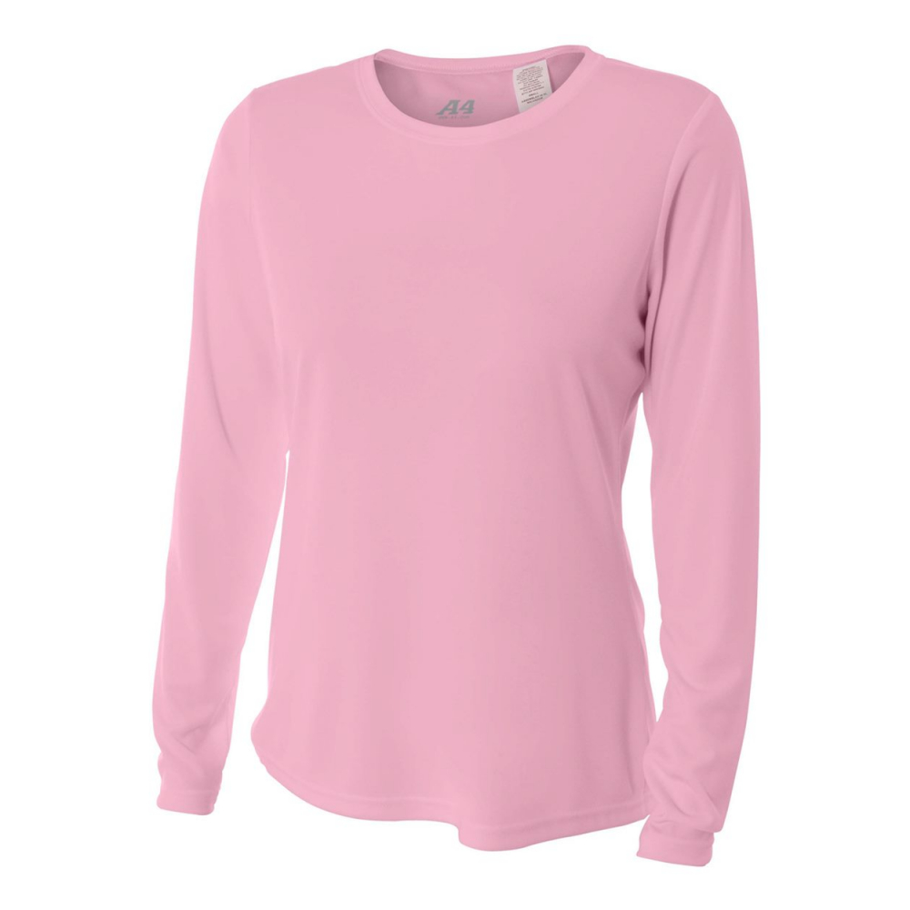A4 Women's Performance Long-Sleeve Crew Neck Shirt (Pink) (Model #NW3002-PNK)