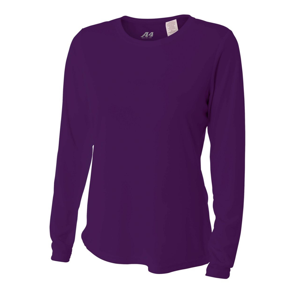 A4 Women's Performance Long-Sleeve Crew Neck Shirt (Purple) (Model #NW3002-PUR)
