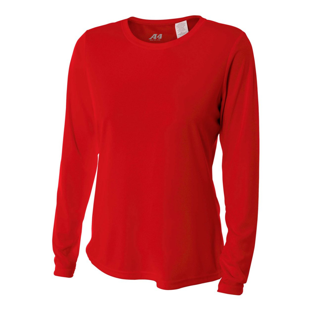 A4 Women's Performance Long-Sleeve Crew Neck Shirt (Scarlet) (Model #NW3002-SCR)