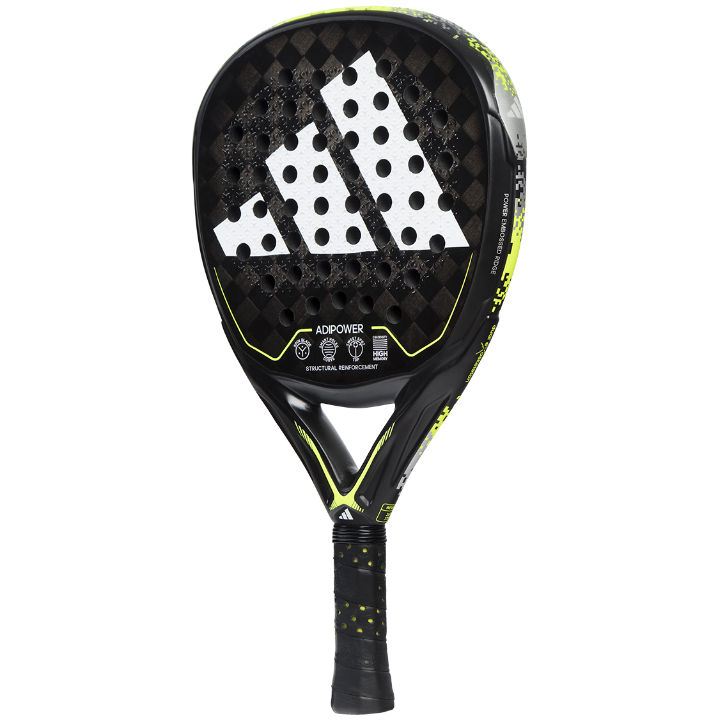 The Adidas Adipower 3.2 Padel Racket is the continuation of a padel racket made to win. Get superior performance thanks to its 15k carbon surface added to the the EVA high-performance memory rubber that provides a great generation of power in all your shots. The Dual Exoskeleton technology covers the heart of the racket with carbon fibers to provide elevated rigidity that translates into a huge power. The roughness of the Spin Blade technology allows enormous access to spin on all your shots. Carbon reinforcements are intertwined throughout the structure thanks to Structural Reinforcement technology that allows a high resistance to torsion even in your most aggressive shots. This racket’s diamond oversize shape will increase the reception area, obtaining a substantial increase in power and an important improvement in getting balls off-center. The sweet spot on top offers extra power for smash shots.