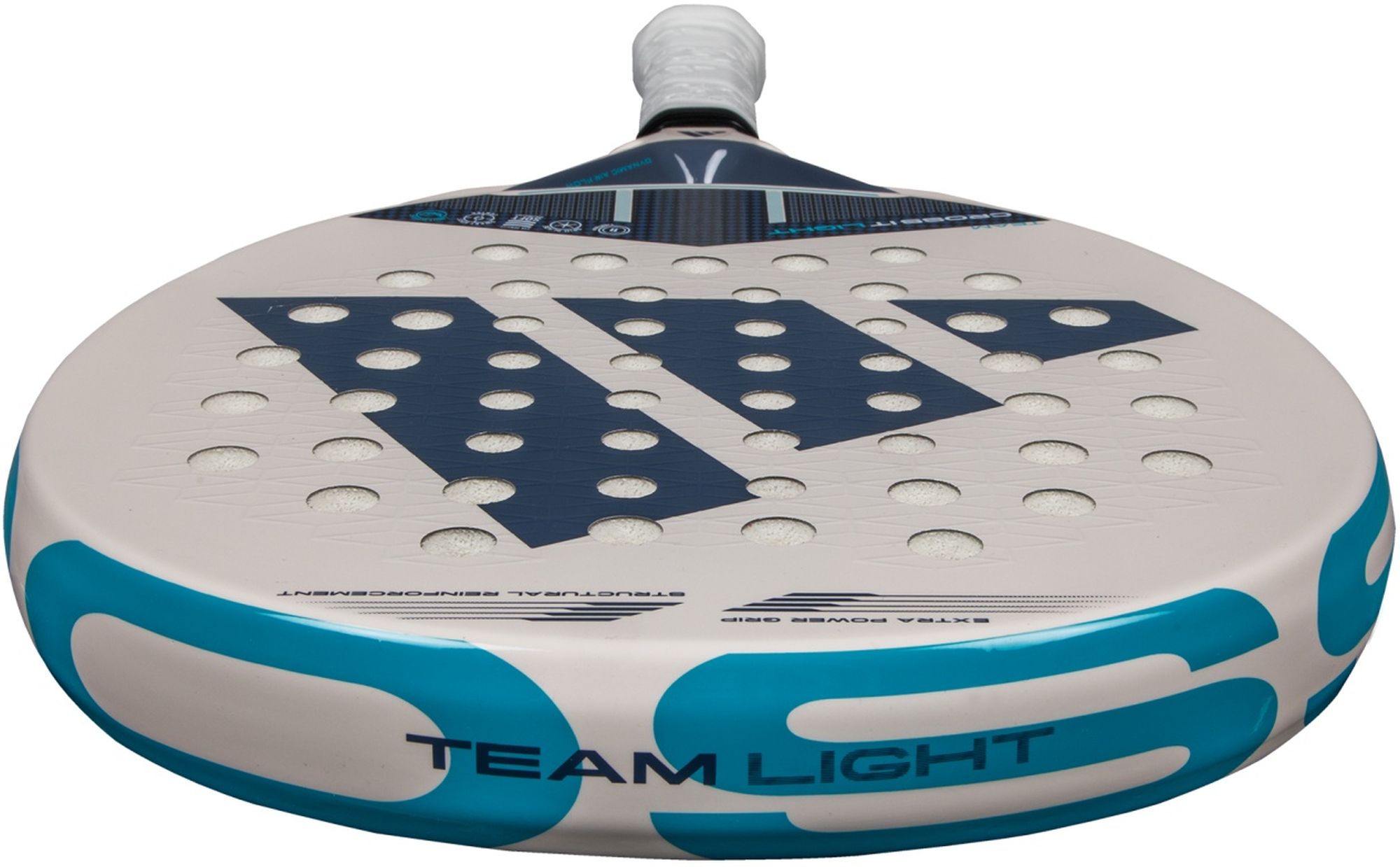 The Adidas Cross It Team Light 3.4 Padel Racket is one of two innovative models in the Cross It range, distinguished by its lightweight design while maintaining all the essential features of Cross It. The Power Extra Grip and 11 Thirteen-hole arrangement enhance its ability to deliver powerful shots. Meanwhile, the Dynamic Air Flow technology further improves maneuverability. Control and spin shots are also well catered for, thanks to the Spin Blade Decal texture.