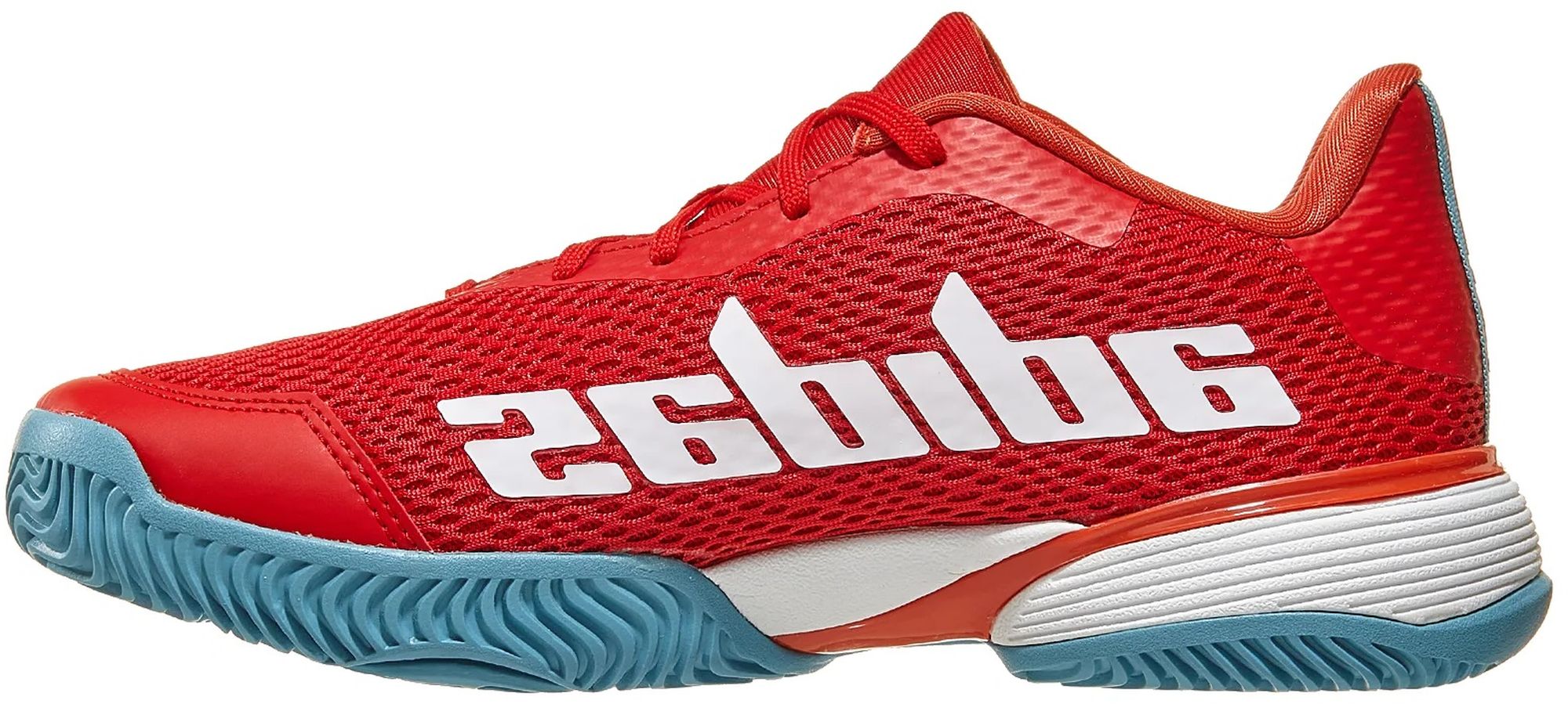 The Adidas Juniors Barricade Tennis Shoes, supportive hard court shoes are made in part with recycled materials.