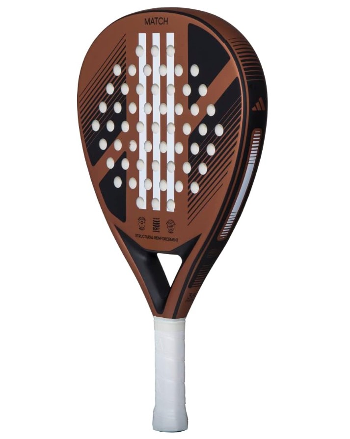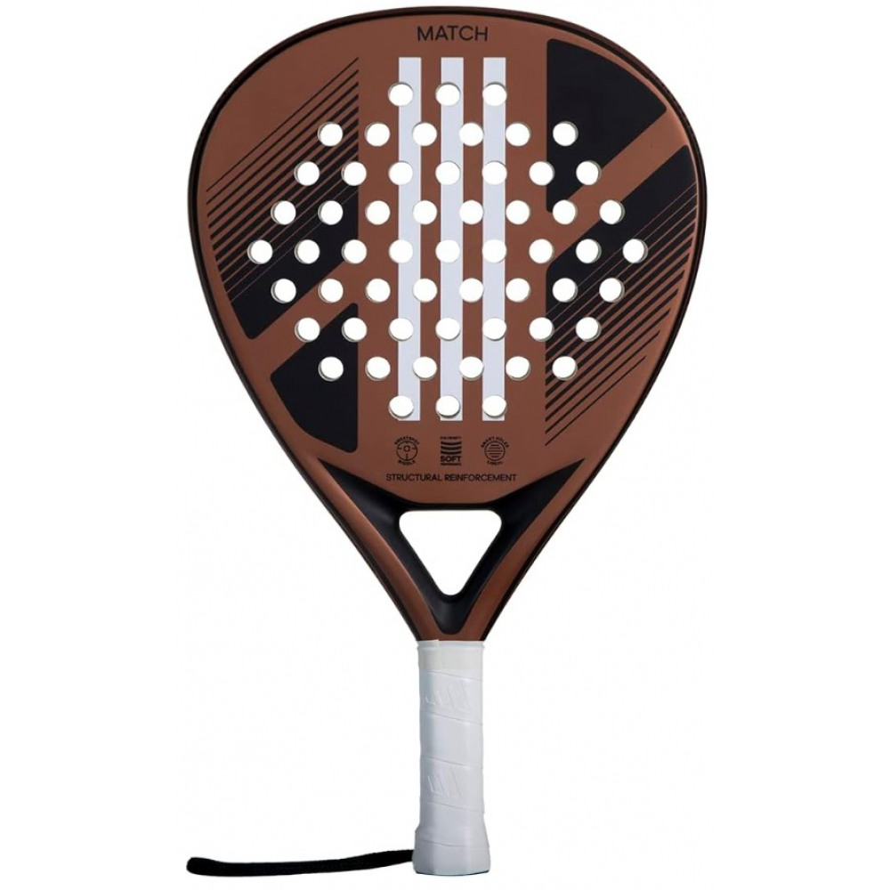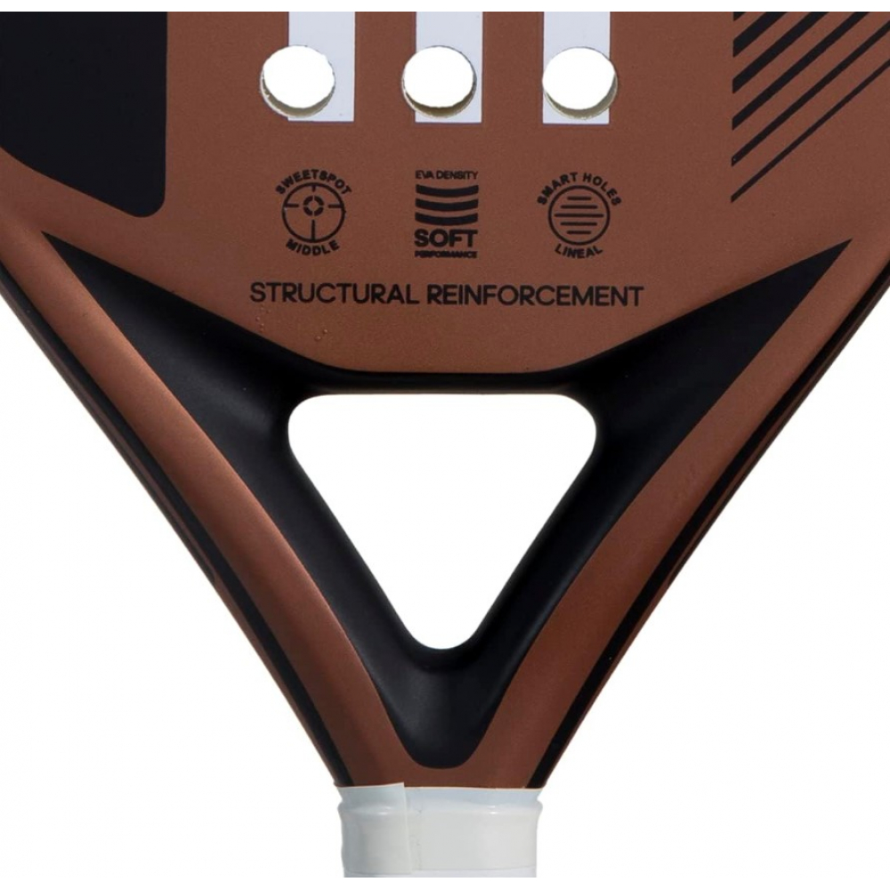The Adidas Match 3.2 Bronze Padel Racket has all the features to get a successful start in the game of padel. This racket's large hitting area will help you to connect on all your shots. The EVA soft performance rubber combined with the fiberglass surface provides the best combination for a great ball output and the best possible comfort on every shot. The design of the rackets with the weight slightly oriented towards the top helps to achieve an increase in power so that you can elevate your attacking shots. The fiberglass surface offers a great ball exit and a very comfortable feeling. It incorporates Structural Reinforcement technology so that no matter how hard you play, your racket will always support all the intensity of your game.