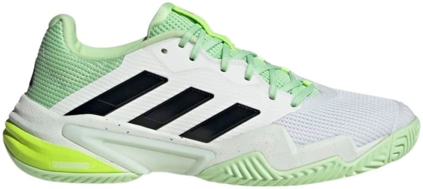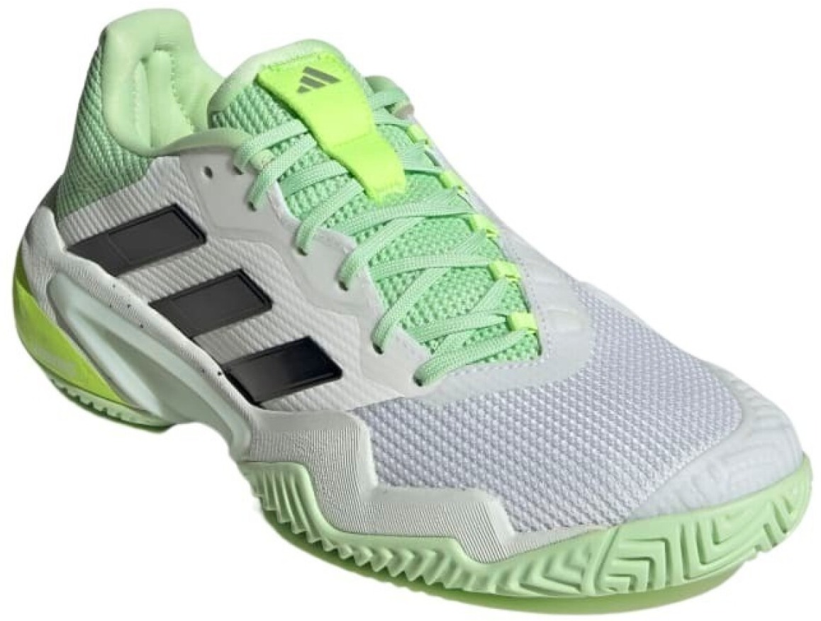 Adidas Men's Barricade 13 Tennis Shoes (Cloud White/Core Black/Semi Green Spark) (Model #IG3114)