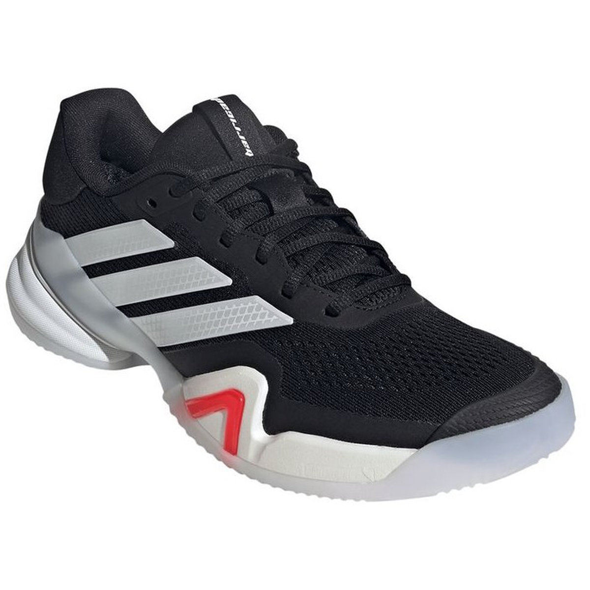 The adidas Men's Barricade 14 Tennis Shoes blend iconic heritage with modern innovation to help you dominate every rally. Built with an engineered mesh upper for breathability, stretch, and support, they keep your feet cool and secure throughout play. The Lighttraxion outsole reduces weight while maintaining reliable grip, and the reimagined claw system adds stability during quick changes of direction. With adidas Repetitor cushioning for energy return and an adjustable lacing system for a personalized fit, these shoes deliver lasting comfort and performance match after match.