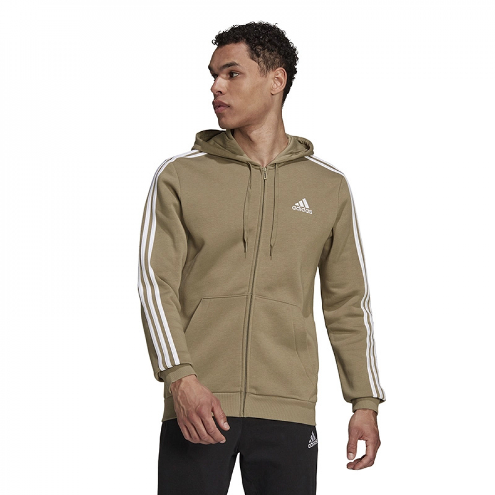 Adidas Men's Essentials 3 Stripe Full Zip Hoodie (Olive) (Model #H12169)