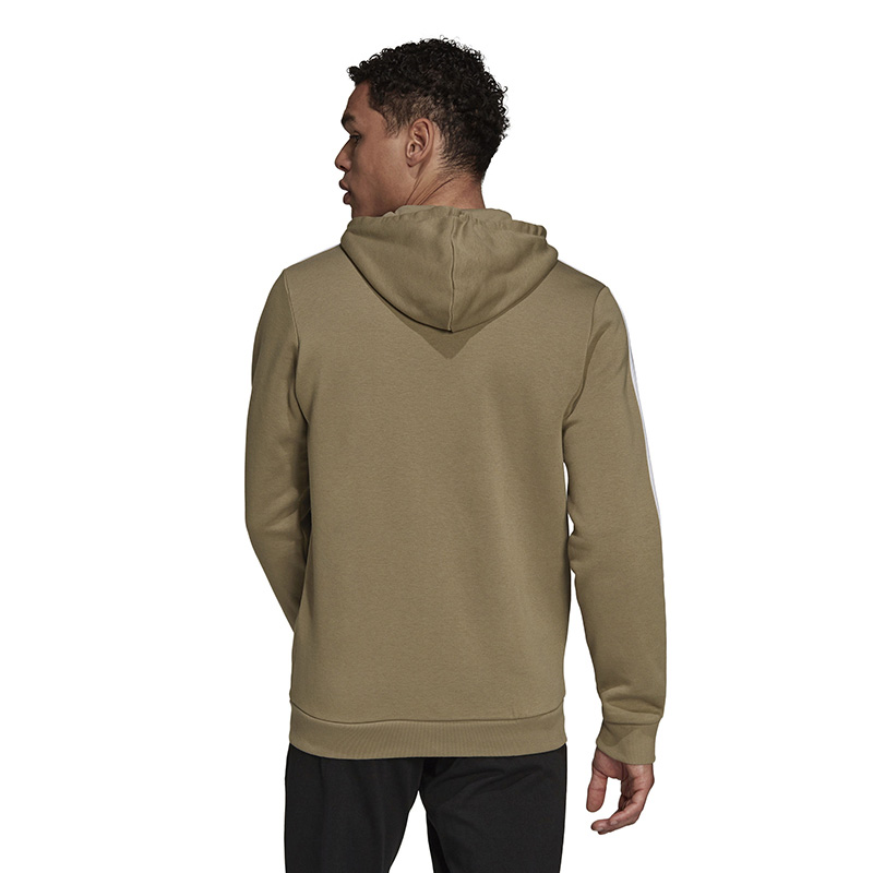 Adidas Men's Essentials 3 Stripe Full Zip Hoodie (Olive)