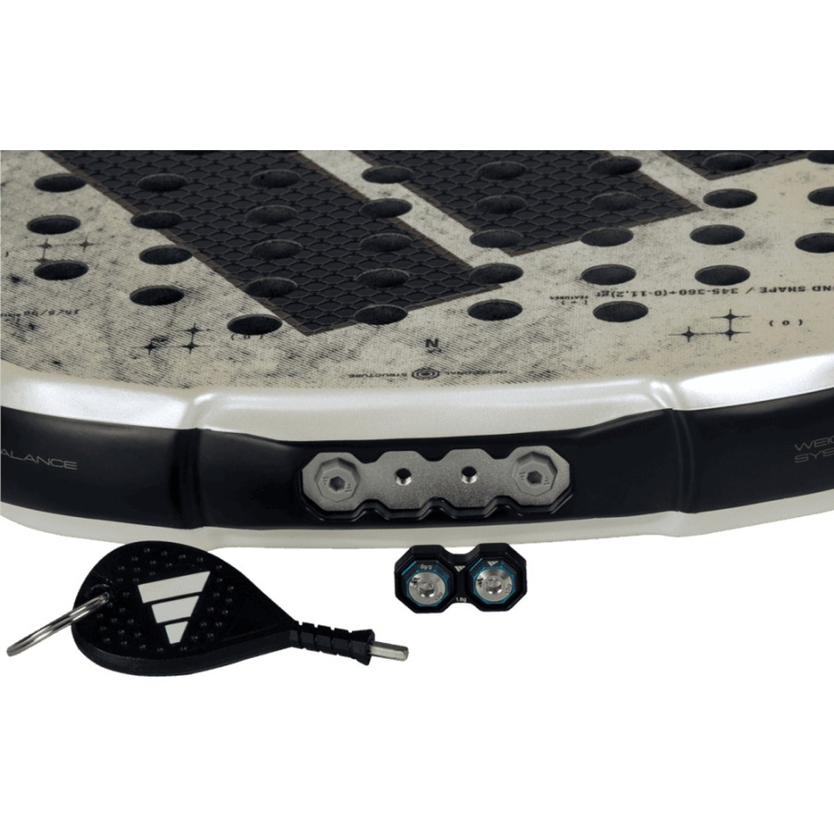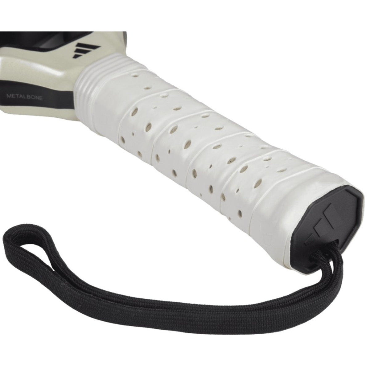 The Adidas Metalbone Pro Padel Racket is a power racket developed in collaboration with Ale Galán to meet the demands of pro-level players. The 16K aluminized carbon offers high rigidity and durability—ideal for those with powerful strokes. EVA Soft Performance rubber adds low density for excellent ball output and comfort. But beyond its specs, this racket represents a moment: turning the game into something greater. The power extra grip (12cm) is a longer handle with a revolutionary tech that shifts mass toward the head. The diamond oversize shape concentrates weight at the top, increasing inertia, while the low poly tech, with a polyhedral frame and core design, delivers superior power. It comes with a premium, custom-designed case, created specifically for this edition—personally signed by Galán.