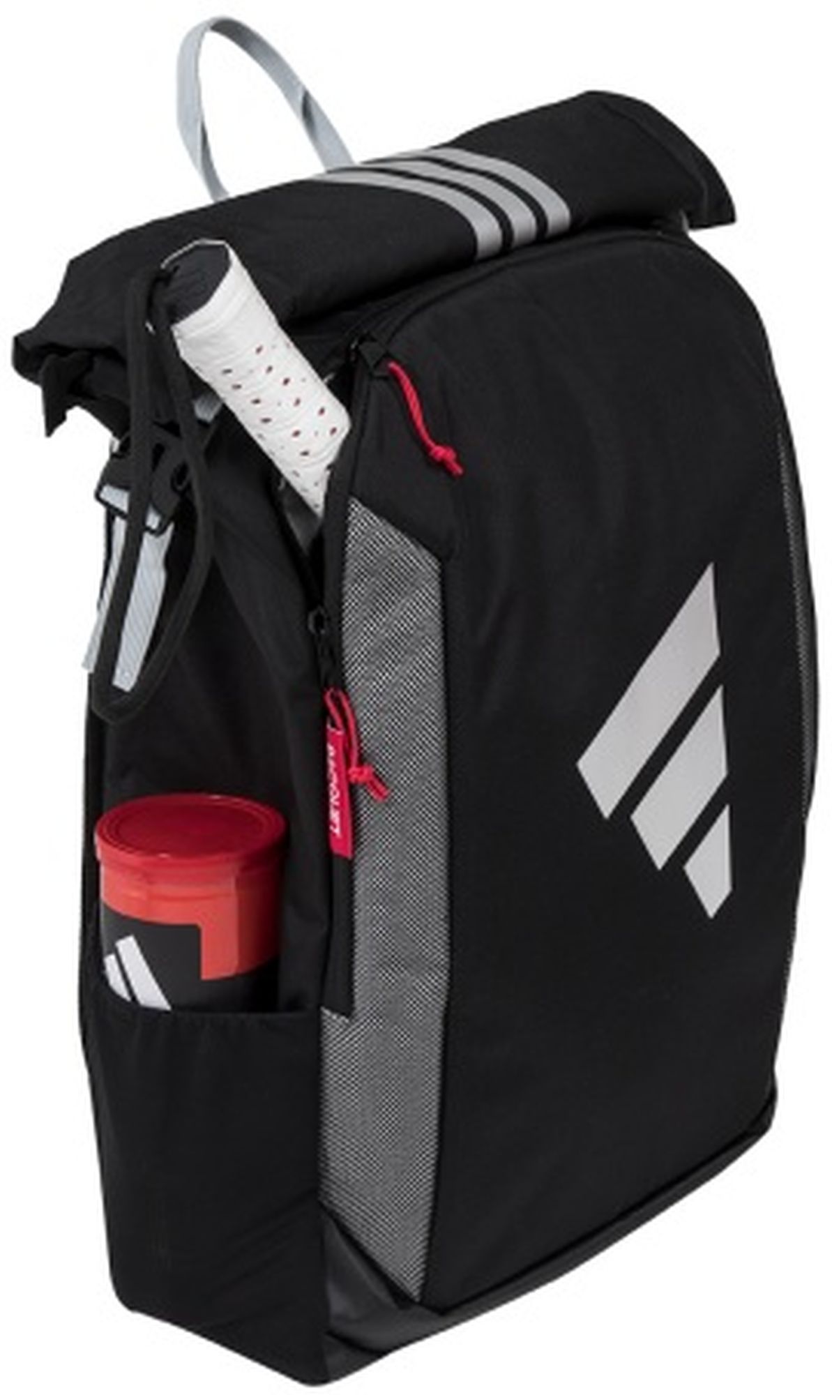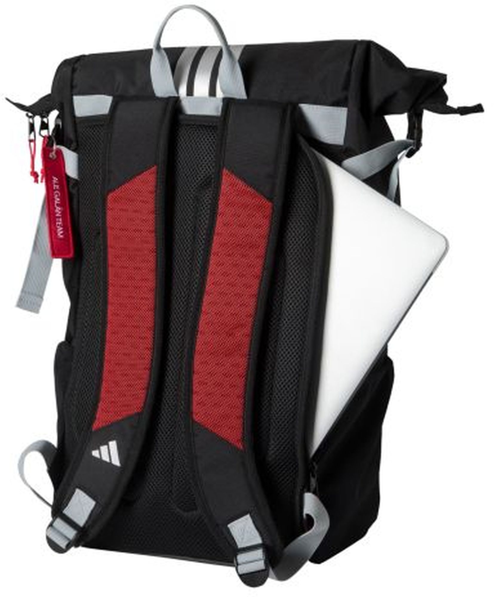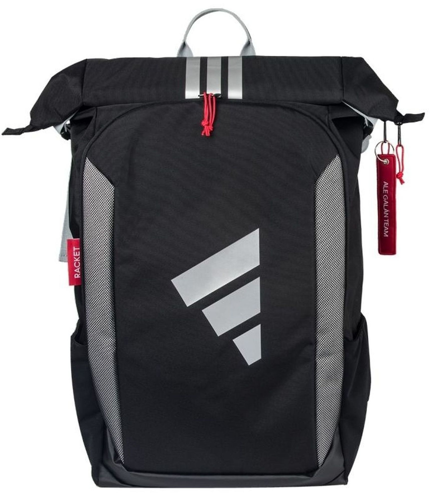 The Adidas Multigame 3.4 Pickleball and Padel Backpack is designed for those who live life to the fullest. Its adjustable main compartment with a 'Rolltop' closure offers flexibility and space, ideal for adapting to your daily needs. It includes a secure pocket for delicate items and a divider that allows you to comfortably carry your laptop or racket. Two mesh side pockets are perfect for your water bottles, while its padded compartments, one front with thermal insulation and another back for the laptop, provide additional protection. The reinforced bottom ensures great durability, and its adjustable padded mesh straps guarantee comfort with every movement. Additionally, it features an exclusive hangtag with Ale Galán's signature, to take your passion to the next level.