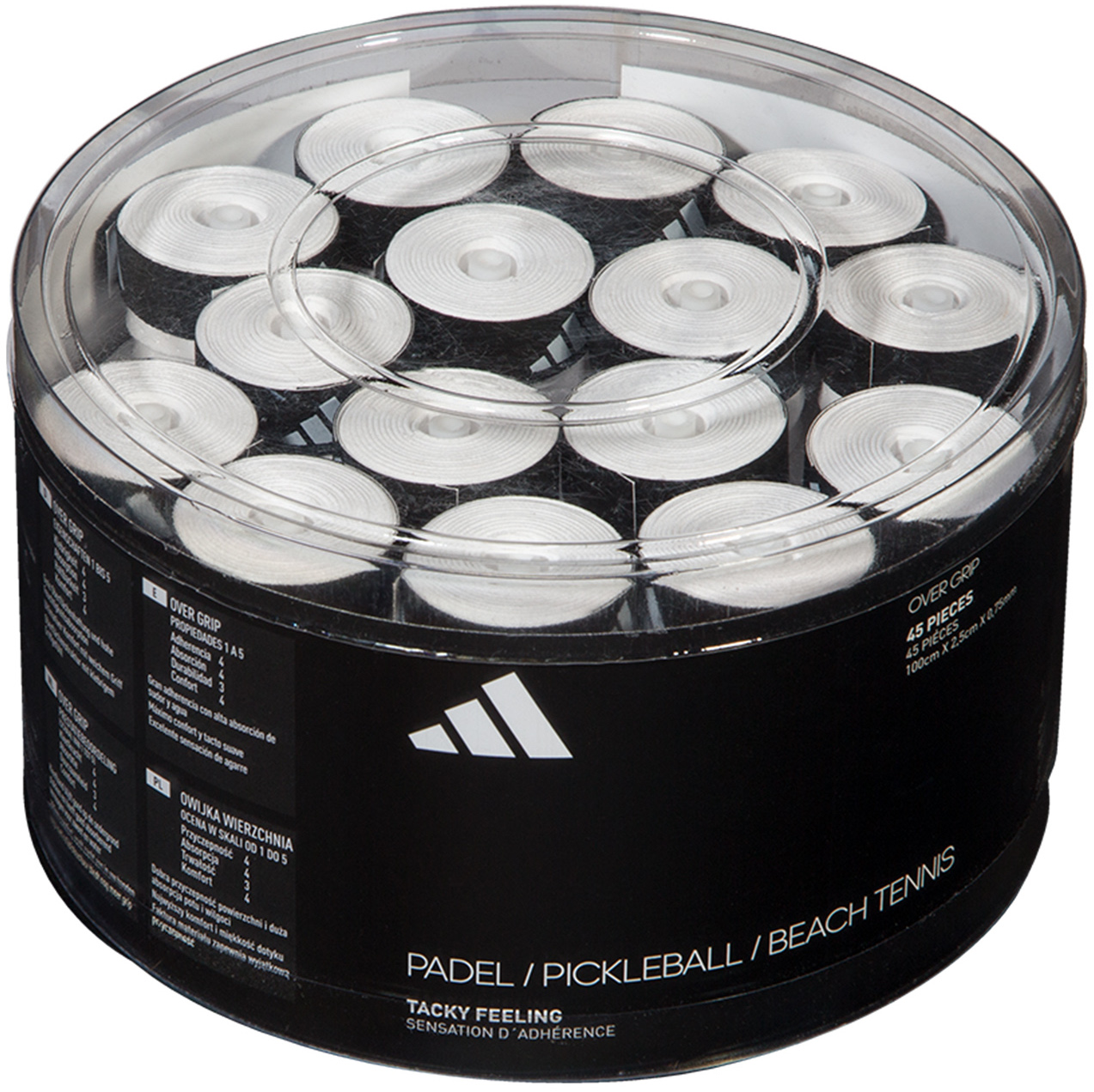 The Adidas Padel Overgrip 45 Pack provides maximum comfort and a soft touch to a variety of racket handles, while absorbing sweat and water.