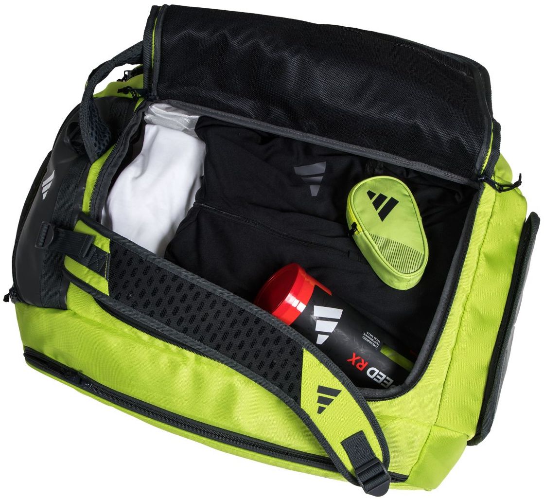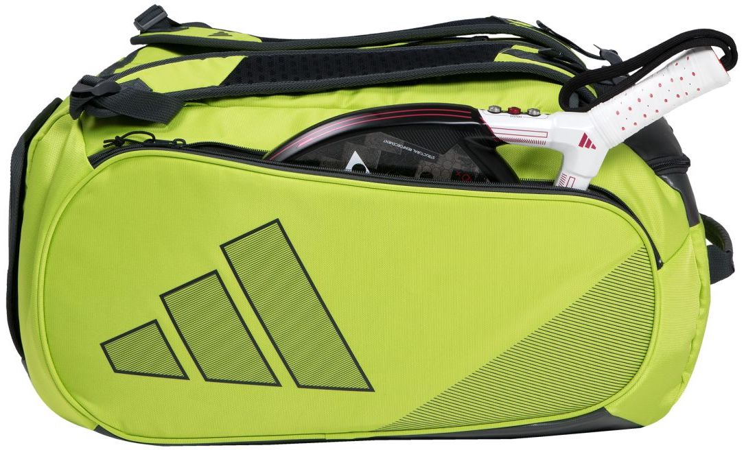 The new design of the adidas Protour 3.3 Padel Racket Bag (Lucid Lemon/Carbon) makes carrying all of your padel equipment easier than ever.