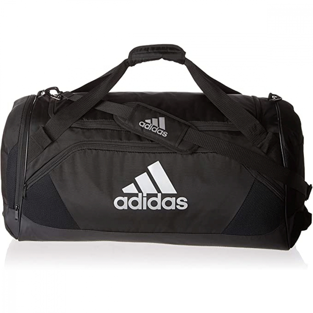 Keep gear organized and separated with this Adidas Team Issue II Large Duffel Bag. it’s made of durable woven fabric with a water-resistant base. it has a huge main compartment and a ventilated side pocket for wet or muddy shoes. a padded shoulder strap and padded handles make for comfortable carrying.