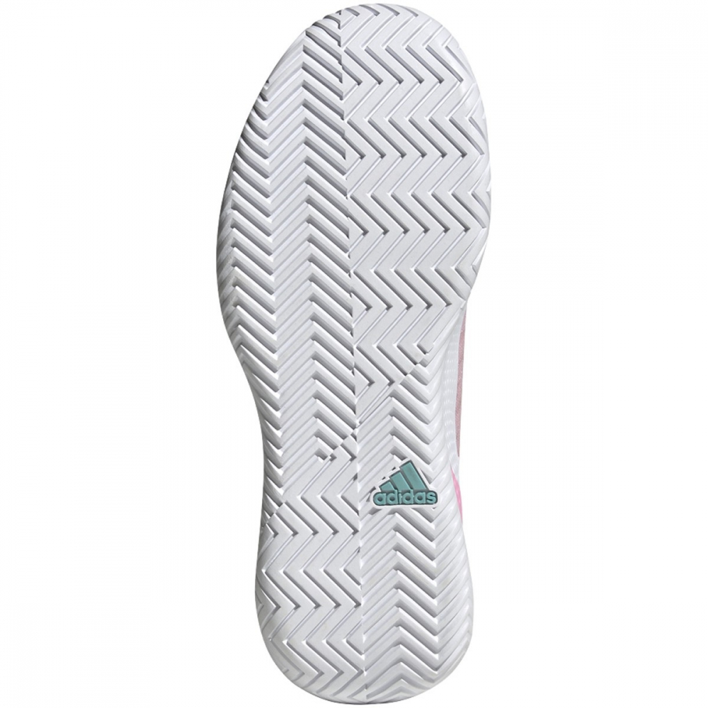 The Adidas Women’s Defiant Speed Tennis Shoes (Clear Pink/White/Beam Pink) is for the player in a hurry to succeed. These Adidas tennis shoes keep you quick with a lightweight mesh upper and hard court-optimized Adiwear outsole. Support in the midfoot area helps you react quickly when opponents try to catch you off guard. The flexible Bounce midsole smooths out every sprint and sidestep.