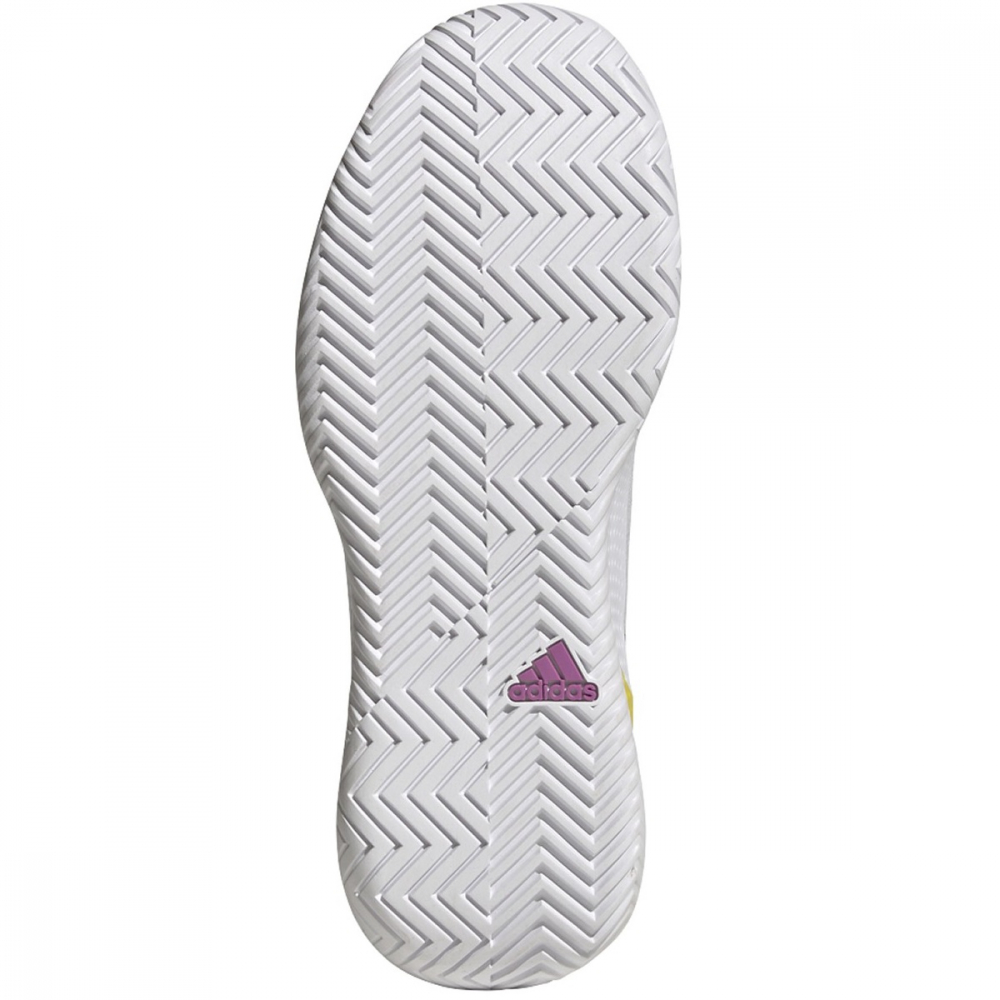 The Adidas Women’s Defiant Speed Tennis Shoes (Cloud White/Cloud White/Semi Pulse Lilac) is for the player in a hurry to succeed. These Adidas tennis shoes keep you quick with a lightweight mesh upper and hard court-optimized Adiwear outsole. Support in the midfoot area helps you react quickly when opponents try to catch you off guard. The flexible Bounce midsole smooths out every sprint and sidestep.