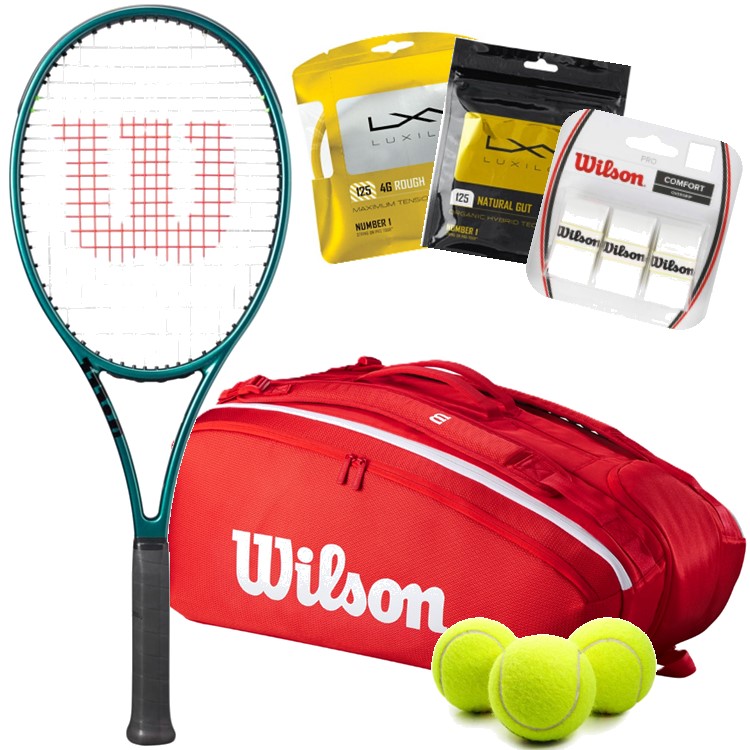 Play like Alex de Minaur with his official Pro Player Tennis Bundle, featuring the gear setup he uses on tour. Your new Wilson Ultra 99 Pro v5 Tennis Racquet will be strung at 53 lbs with Luxilon Natural Gut 125 in the mains and Luxilon 4G Rough 125 in the crosses. We will include the Wilson Ultra v5 Tour 12 Pack Tennis Bag in Blue and a pack of Wilson Pro Overgrip that he uses. We’ll also include a can of pressurized tennis balls, so you are ready to play, out of the box.