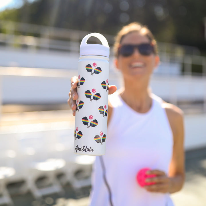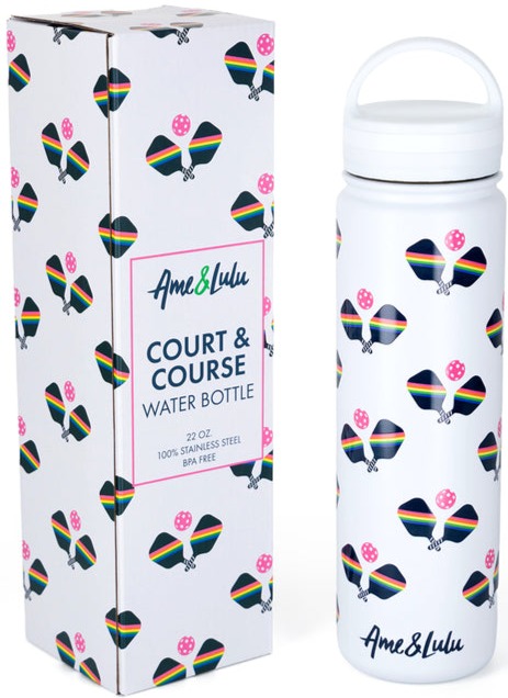 Ame & Lulu Court & Course Pickleball Water Bottle (Rainbow Paddles)