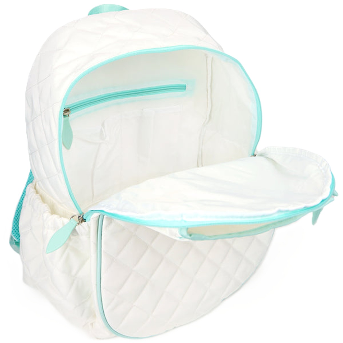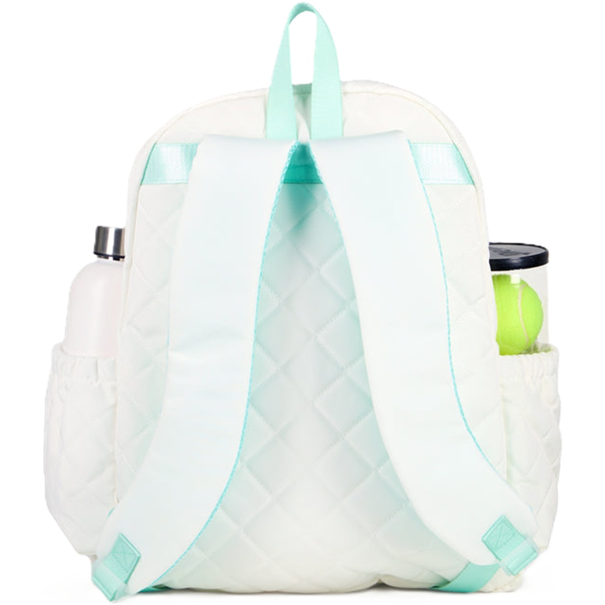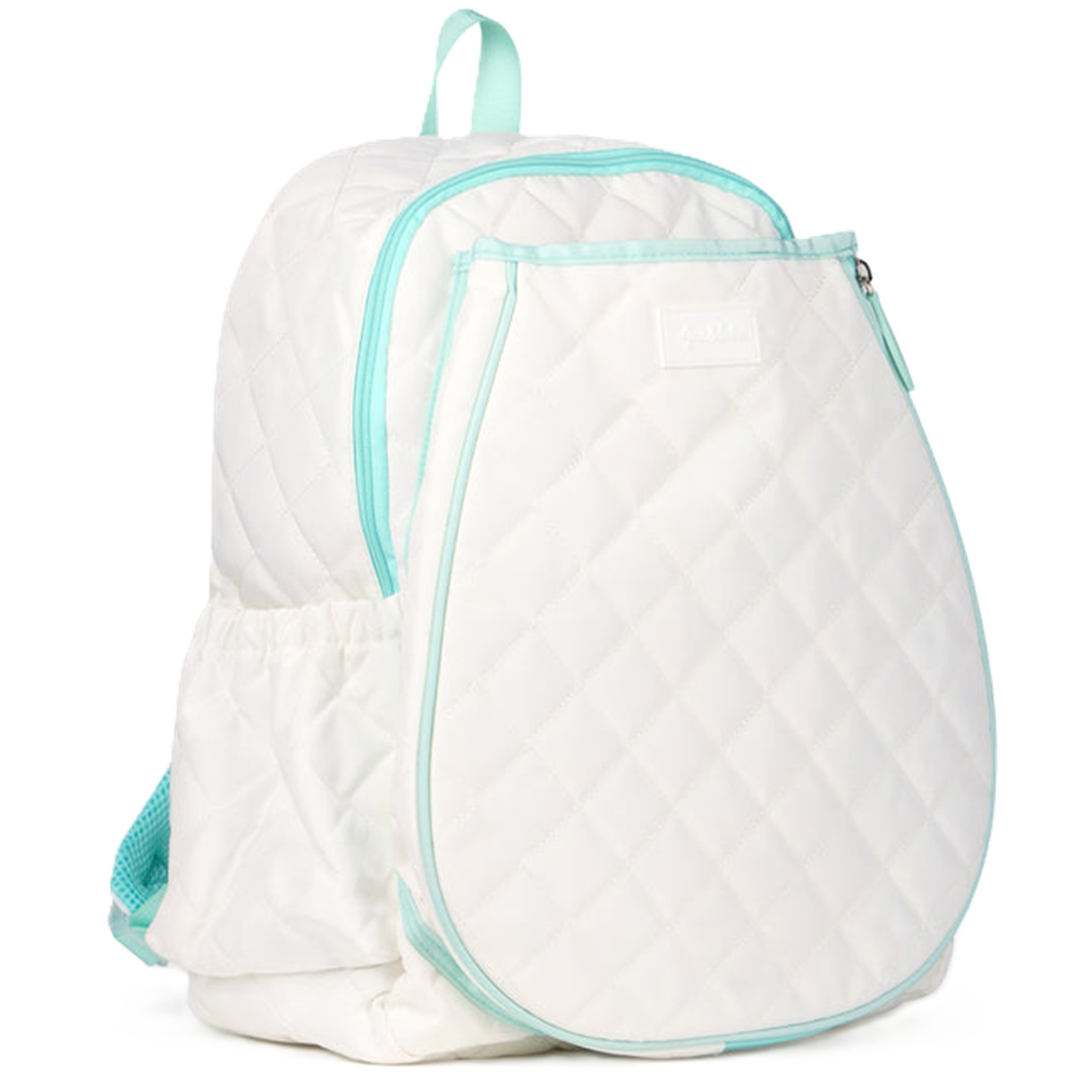 The Ame & Lulu Game On Tennis Backpack (White/Light Blue) is made out of lightweight yet sturdy nylon and now has quilting and extra padding for structure and comfort.