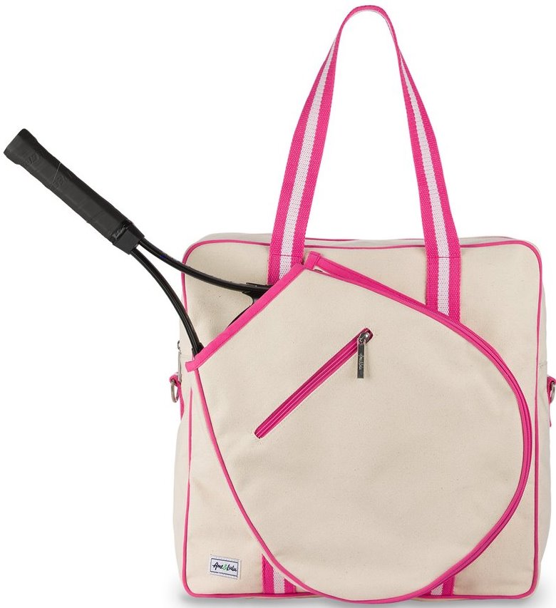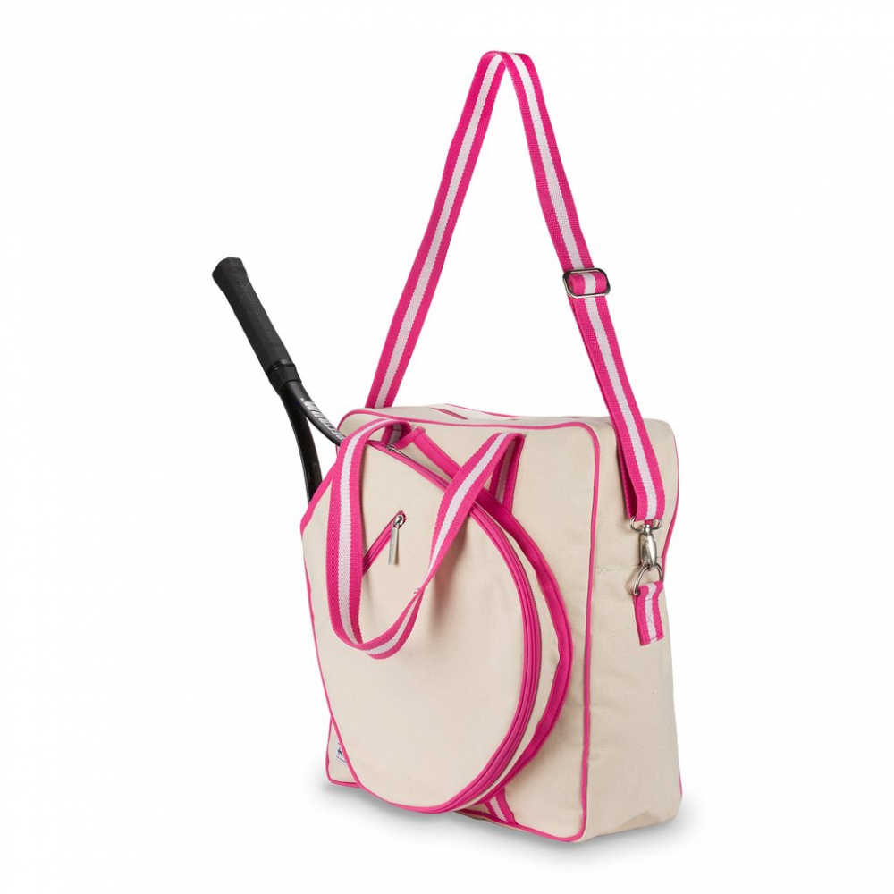 The Ame & Lulu Hamptons Tennis Tour Bag is made out of durable canvas and features an adjustable shoulder strap with accent color webbing.