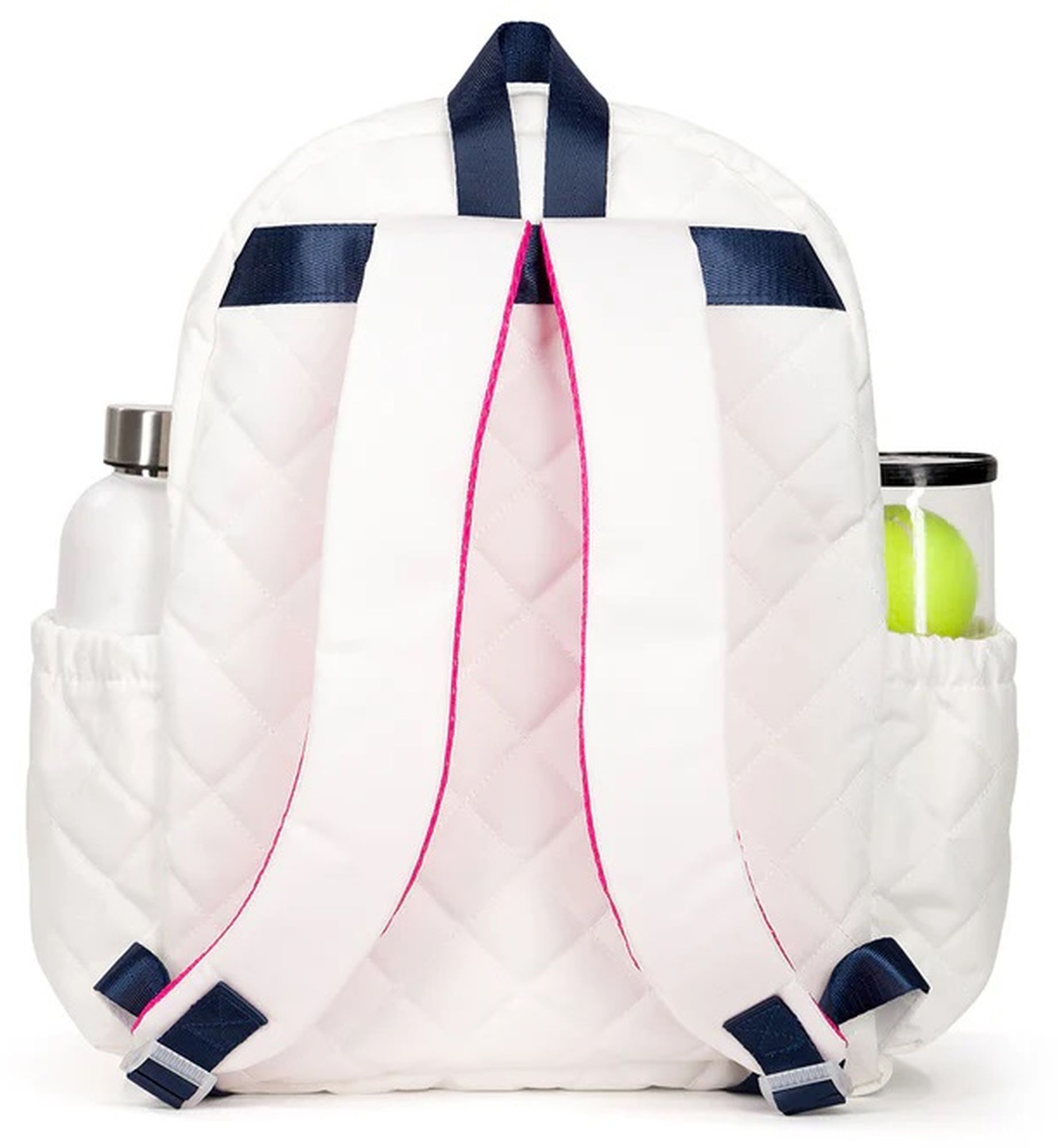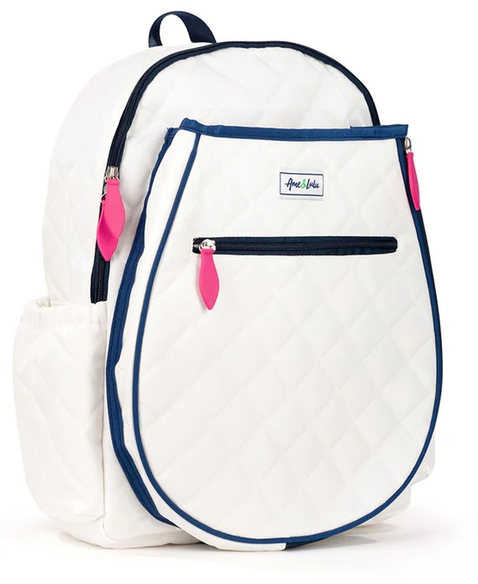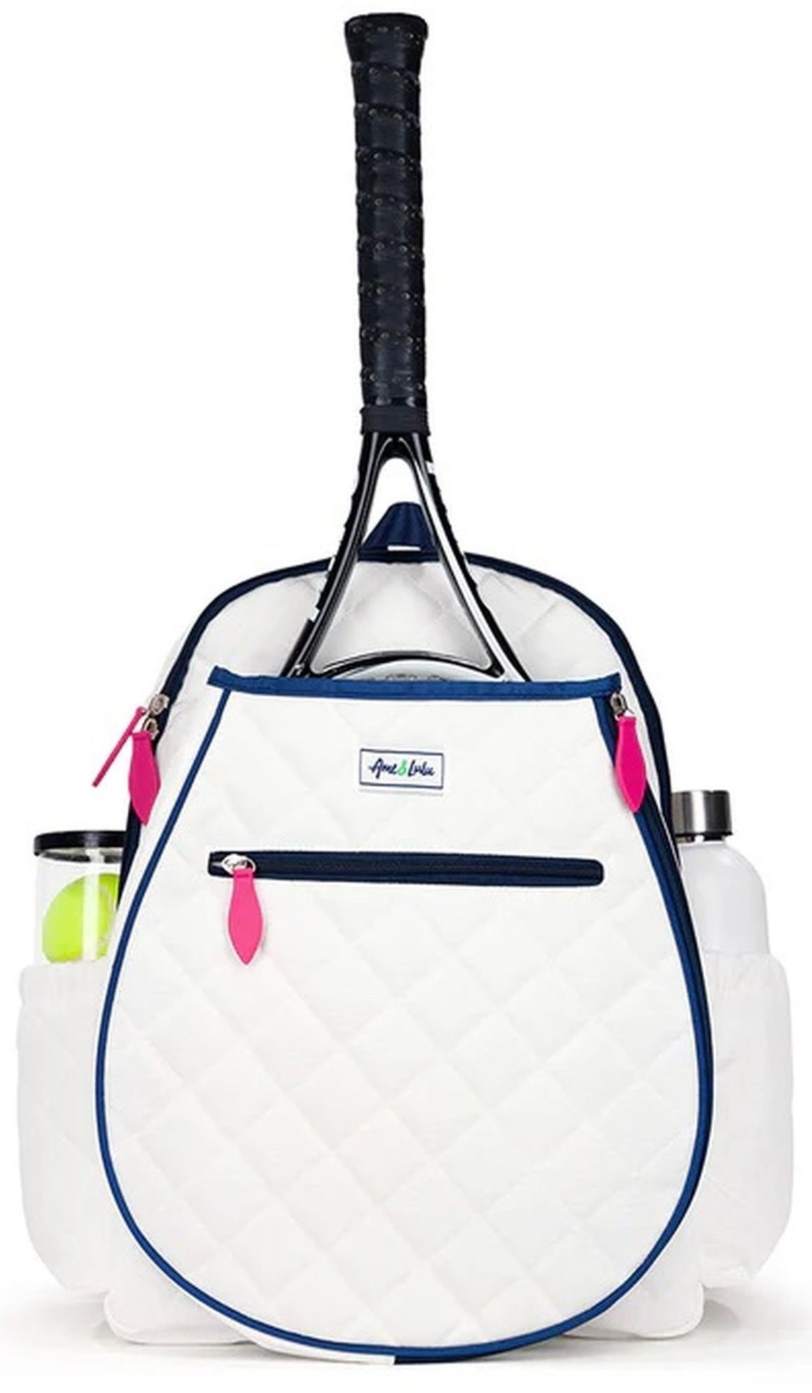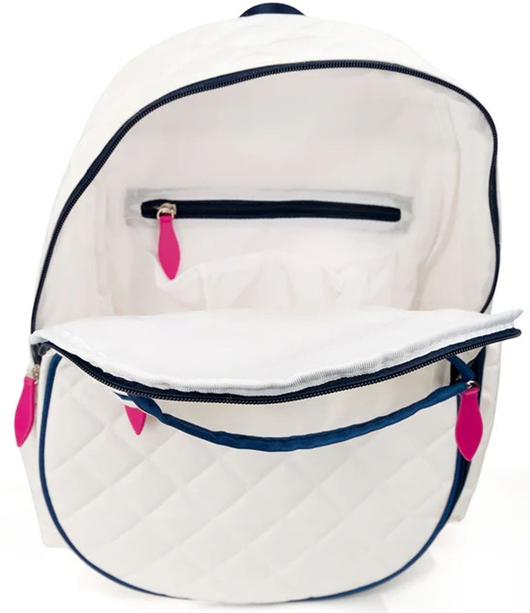 Ame & Lulu Junior Love Tennis Backpack (Quilted White/Navy/Pink) (Model #JLTBP320)