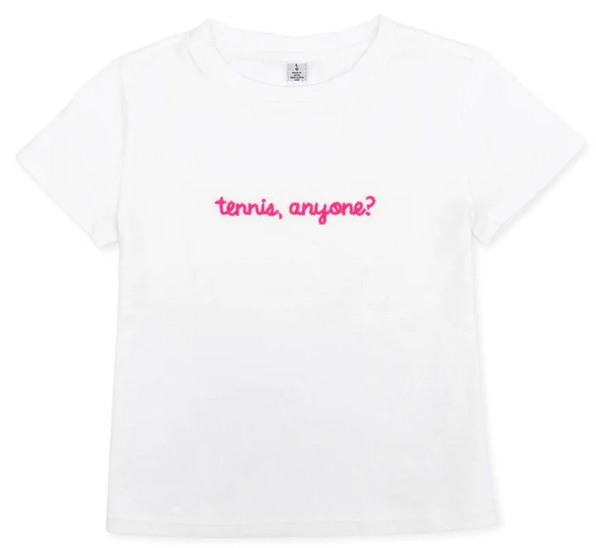 The Ame & Lulu Kids Sporty Love Tennis Anyone T-Shirt is made out of soft, lightweight cotton and easy to wear with embroidery detail. Your little one will be the star of the court.