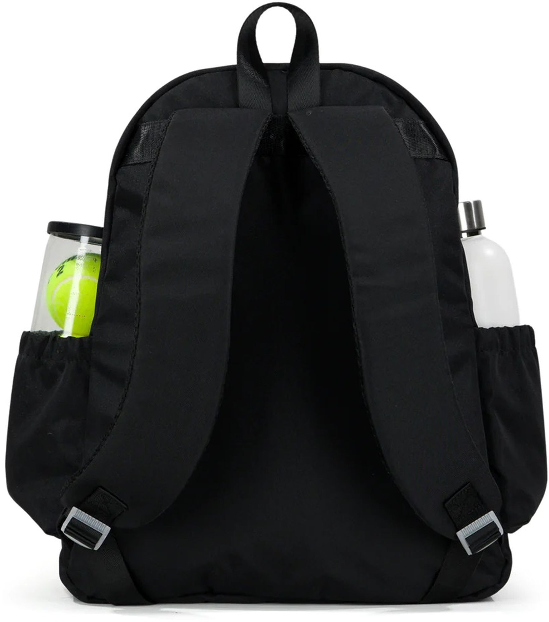 The Ame & Lulu Pickleball Time Backpack is made out of structured nylon with a paddle shaped pocket. This bag will keep you organized on and off the court.