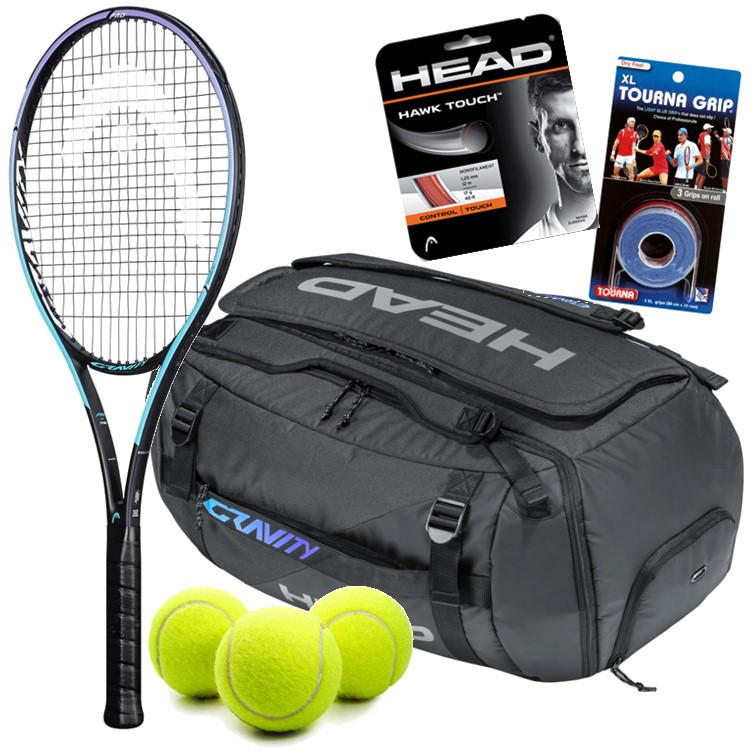 This is the Ashleigh Barty HEAD Gravity Pro Racquet setup combined with the Head Gravity tennis duffle bag she uses. The racquet comes strung with the same setup that Barty is said to use, which is Head Hawk Touch 17g Tennis String for the mains and natural gut for the crosses at 50 lbs. The Barty package also comes with a 3 pack of Tourna Grip XL Overgrip which she uses.