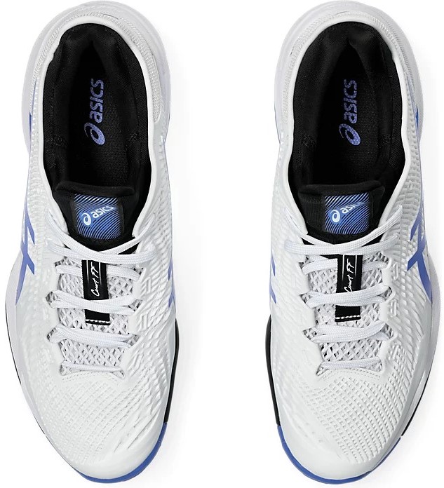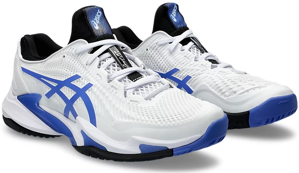 The Asics Men's Court FF 3 Tennis Shoes (White/Sapphire) are designed to reduce the load placed on the body, thus helping you swing stronger and recover quicker between shots.