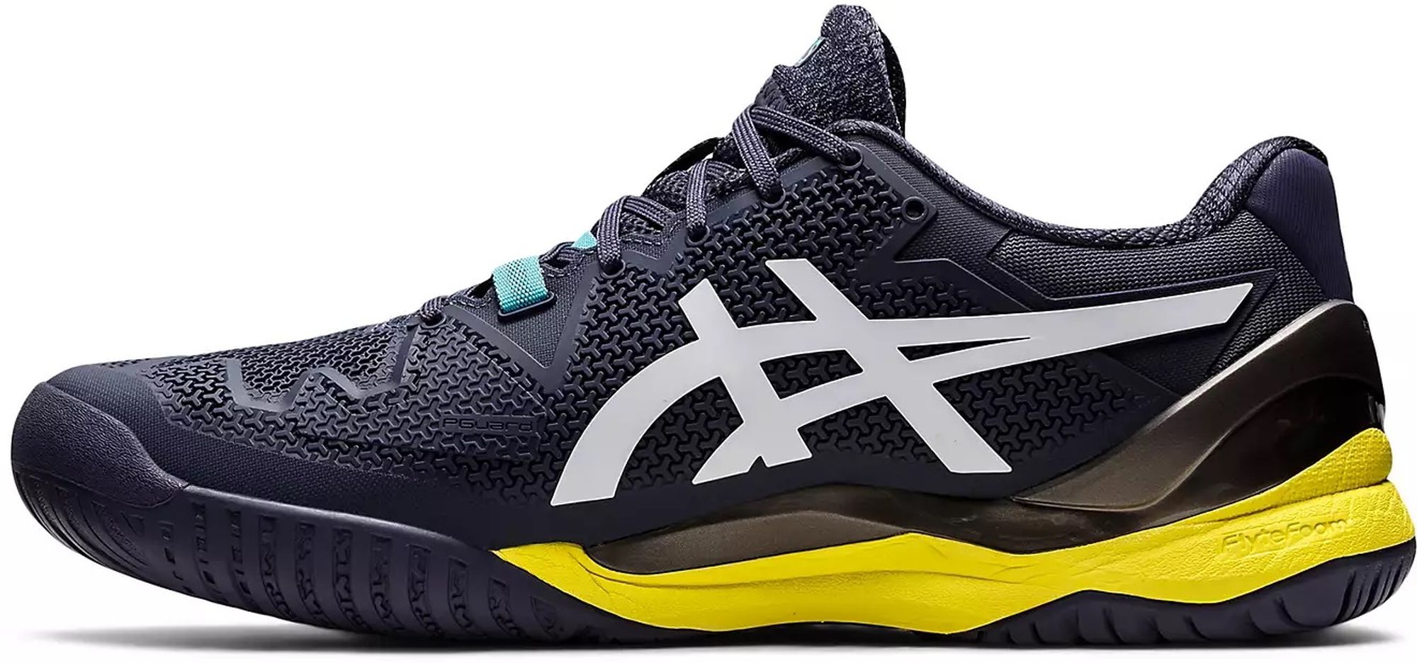 The Asics Men’s Gel-Resolution 8 Clay Court Tennis Shoes (Indigo Fog/White) promotes a responsive stride with a close-to-the-court feel. The FLEXION FIT® upper provides form-fitting support with the integration of DYNAWALL™ technology, which offers added midfoot stability during lateral movements and coast-to-coast coverage. Implementing a torque control feature in the heel counter, this shoe is also designed to help maintain a locked in feel during quick transitions. Renowned for its signature GEL® technology in the heel and midfoot, this shoe significantly reduces the impact of shock from abrupt stop and go movements on court. Additionally, the model also incorporates an AHAR® compound in the outsole that works in conjunction with the PGUARD™ toe protector to increase traction on court, while reducing the overall level of wear.