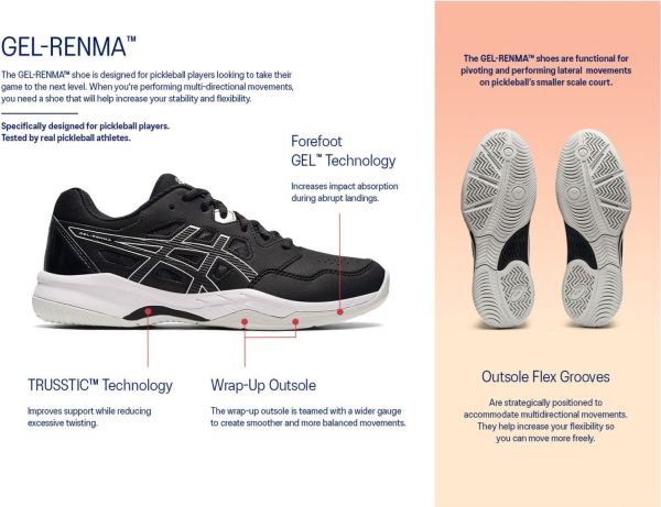 The Asics Women’s Gel-Renma Pickleball Shoe helps you approach your game with confidence.