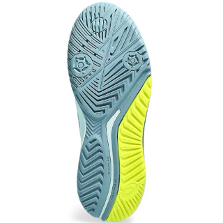 The Asics Women’s Gel-Resolution 9 Tennis Shoes (Soothing Sea//Gris Blue) create advanced stability and cushioning for players who like to control the game from the baseline. The combination of a more flexible upper, paired with a more extensive DynaWall stability piece towards the heel, allows these shoes to feel more stable, but also more dynamic at the same time. Lastly, the full-length outsole and separated heel help produce a more stable landing for quicker recoveries in between shots.