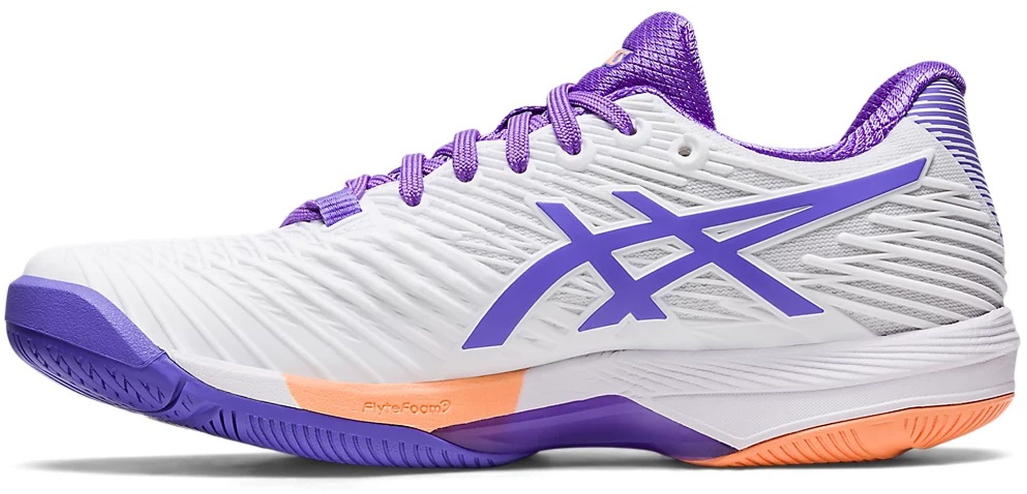 The Asics Women’s Solution Speed FF 2 Tennis Shoe is the fastest model in the Asics tennis range. Combining better stability and a more flexible fit, this shoe is a recommended choice for athletes that are looking for quicker accelerations to be ahead of the ball. The Solution Speed FF 2 model features a PU (polyurethane) application on the upper that helps generate better support, flexibility, and an improved fit.