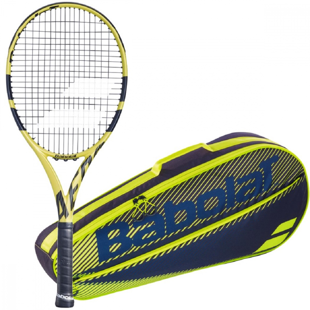 Babolat Aero G Tennis Racquet + Yellow Club Bag Starter Bundle (Model #102390-191-751202-142-BNDL)