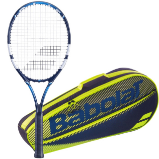 This tennis starter set includes (1) Babolat Eagle Pre-strung Tennis Racquet in your choice of grip size and (1) yellow Babolat RH3 Essential tennis bag.