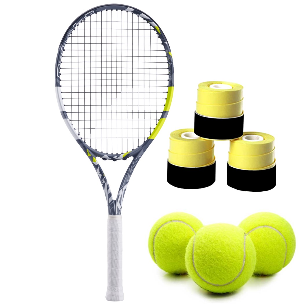 This Babolat Evo Aero Lite Singles Player Pack includes (1) Babolat Evo Aero Lite yellow pre-strung tennis racquet in your choice of grip size, (3) yellow overgrips, and (3) tennis balls.