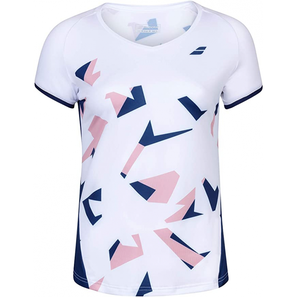 Babolat Girls Compete Cap Sleeve Tennis Top with Performance Polyester (White/Estate Blue)