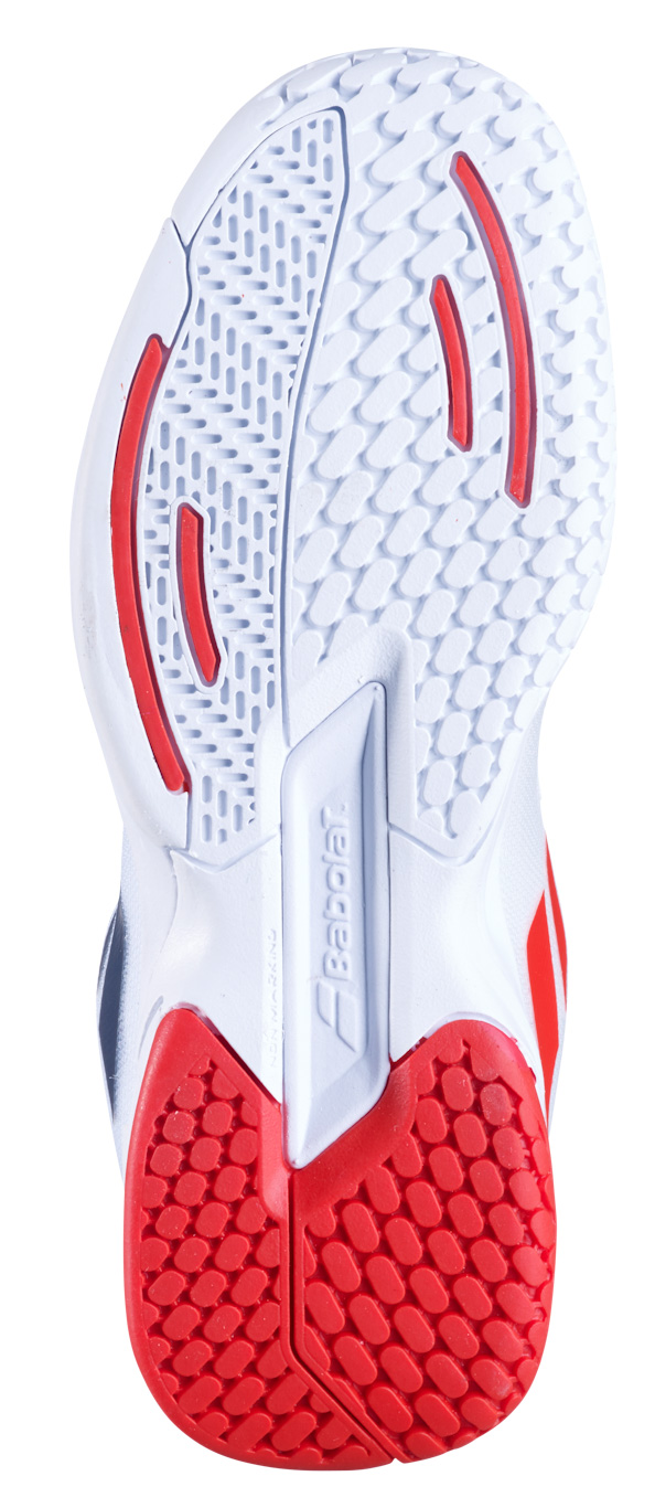 The famous Babolat Jet engineered in performance junior footwear. Ideal for juniors looking for a lightweight and speedy all court shoe. A soft and comfortable shoe able to withstand the daily abuse tennis players have on shoes. With strong support and grip to help you stop and adjust to tricky shots. Unique piece upper made with ultra durable kevlar and Polyamide diber woven into targeted zones. Michelin rubber outsole to improve abrasion resistance and increase traction. Active Flexxion technology for maximum responsiveness