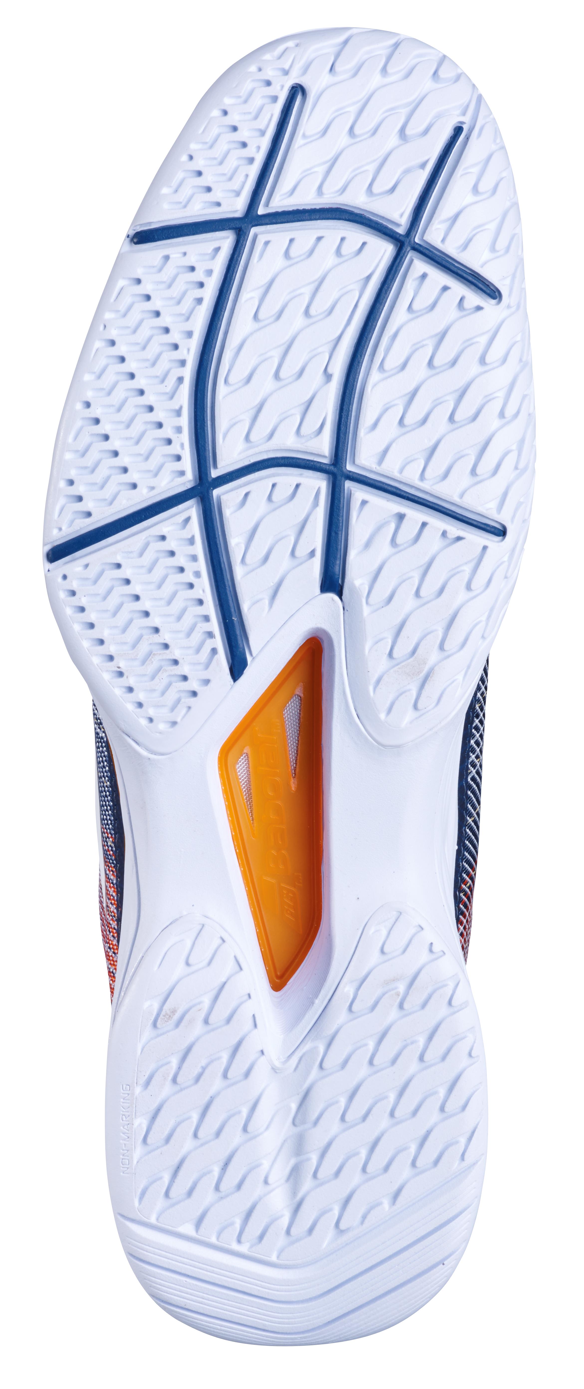 Babolat Men`s Jet Mach II All Court Tennis Shoes are designed to encourage both quickness and support on the court. This is achieved through the innovative use of Matryx 2.0 fabric. It`s lightweight, and consists of Kevlar and Polyamide threads for protection and support. Inside, players can expect streamlined cushioning, while the Michelin Performance outsoles ensure durability. Active Flexion technology throughout the Jet Mach II addresses 9 key pressure points for additional responsiveness. These shoes run narrow and small, we recommend ordering up one half size.