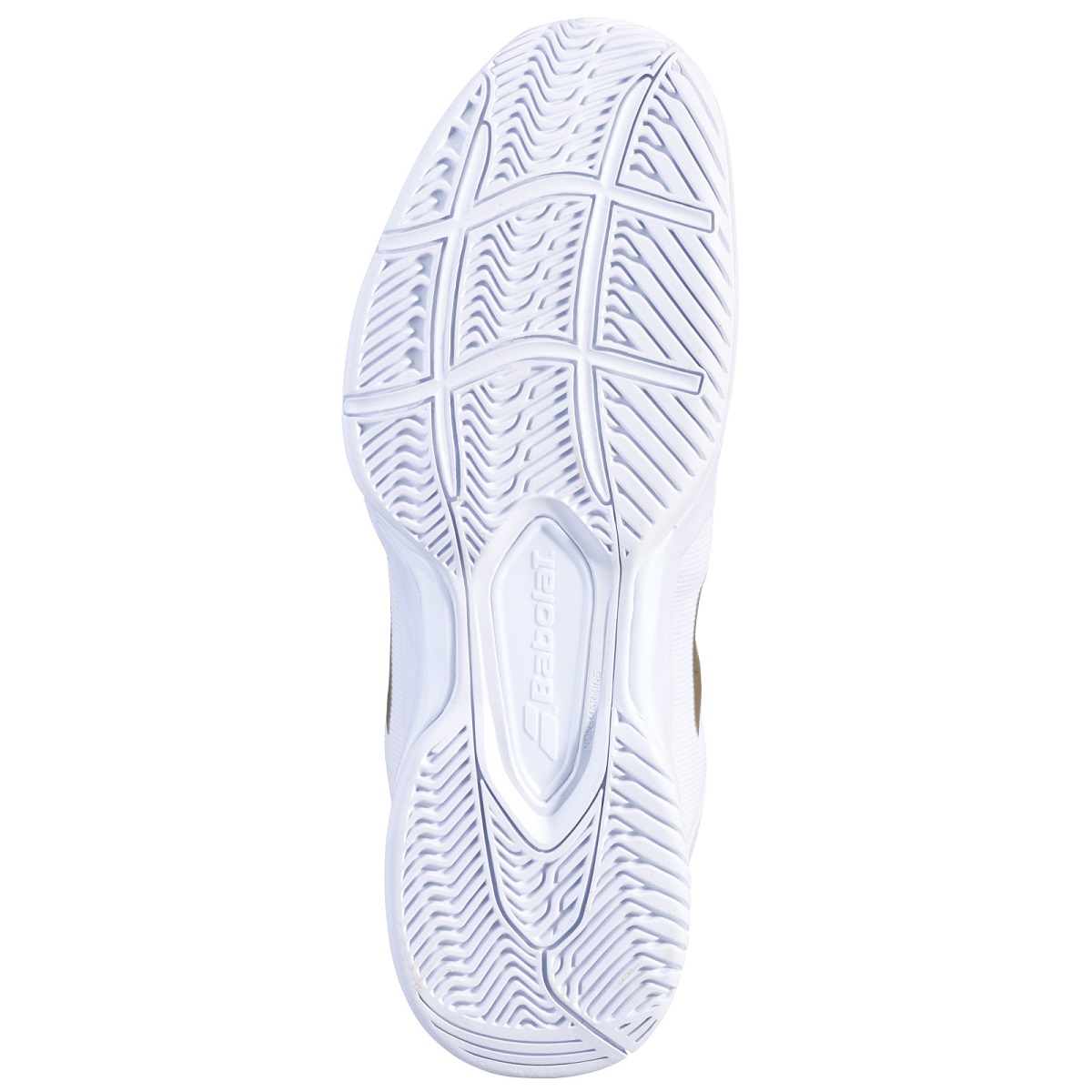 The Babolat Men’s SFX3 All Court Wimbledon Tennis Shoes (White/Gold) ensures all the comfort you need on the court with a sole that is suitable for all surfaces. Babolat has pulled out all the stops to achieve this model’s performance — it feels like a real ‘slipper’! It’s the benchmark for comfort in the Babolat range. The upper has a one-piece construction with flexible mesh that ensures maximum breathability. Padded mesh tongue Protective insert at the tip and on the inside integrates into the lacing for greater protection and stability.