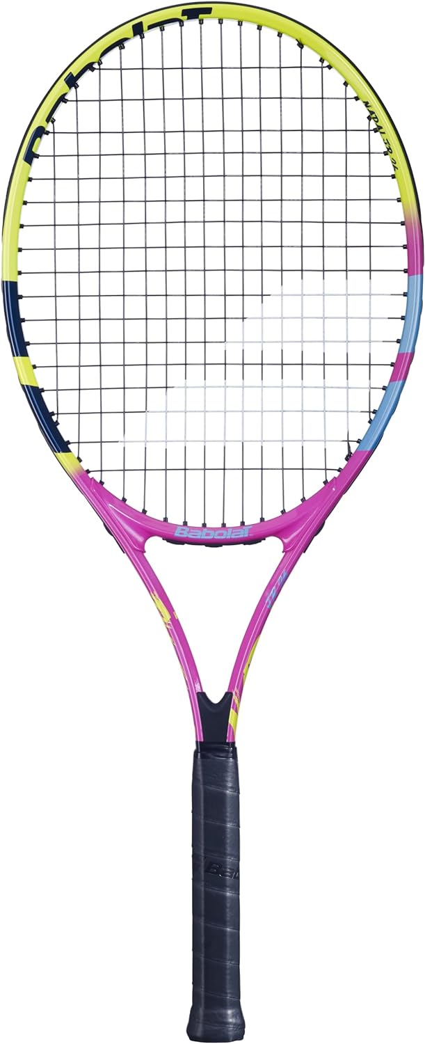 Racquet Features - The Babolat Nadal Jr Tennis Racquet (Rafa 2nd Gen) makes it easier for your budding champion to learn tennis and believe in their dreams. The racquet features a smaller grip, lighter weight, & a new, more aerodynamic section. The more open string pattern and larger head more easily generates power to hit the ball further. The racquet is more maneuverable and more forgiving, making it easy to progress quickly while having fun.