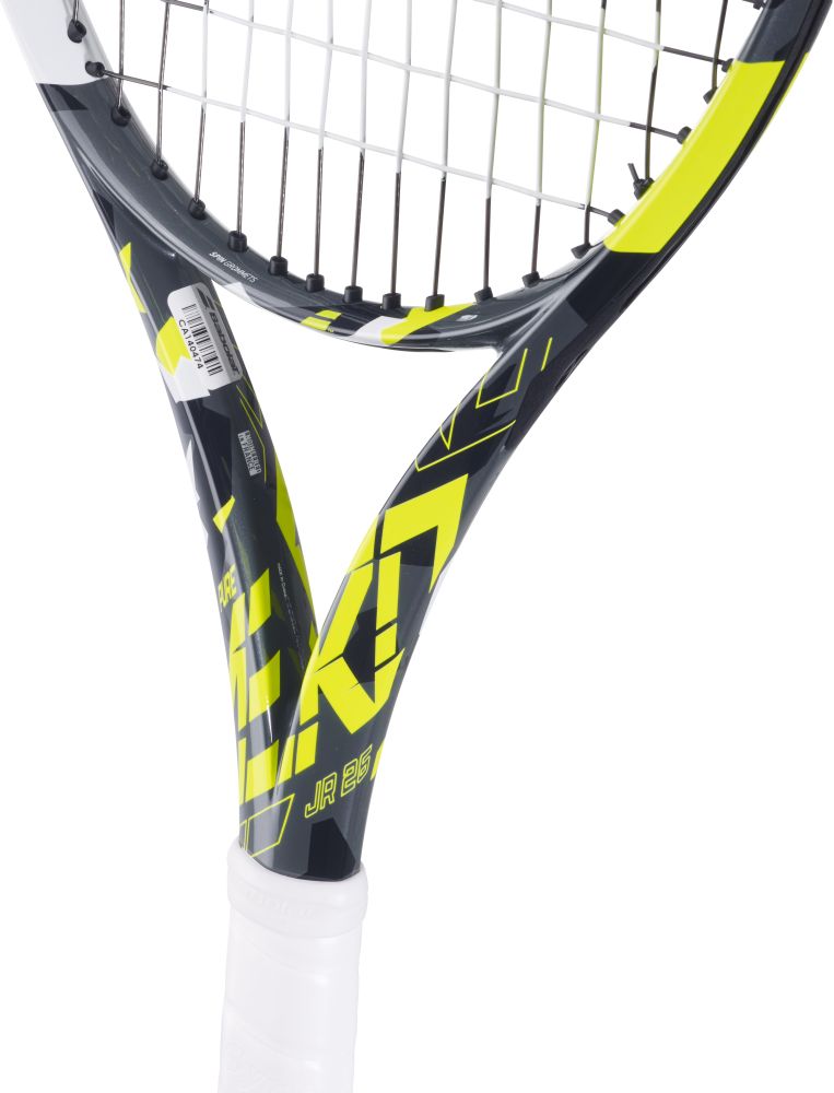 The Babolat Pure Aero Junior 26 Tennis Racquet is the spin machine to help feed your insatiable desire to dominate the game. In 2003, convinced that players would use spin to dominate, Babolat launched the Pure Aero: the first racquet engineered specifically for spin. Year after year, Babolat collaborated with Rafael Nadal and top players to innovate and Evolve the world’s first aerodynamic frame. The results speak for themselves. With 22 Grand Slam singles titles and counting, the Pure Aero is a feared weapon on tour. Now it’s your turn to discover what the ultimate spin machine can bring to your game. The Pure Aero Junior 26 is the prefect racquet for your competitive junior looking to develop their game with spin and power.