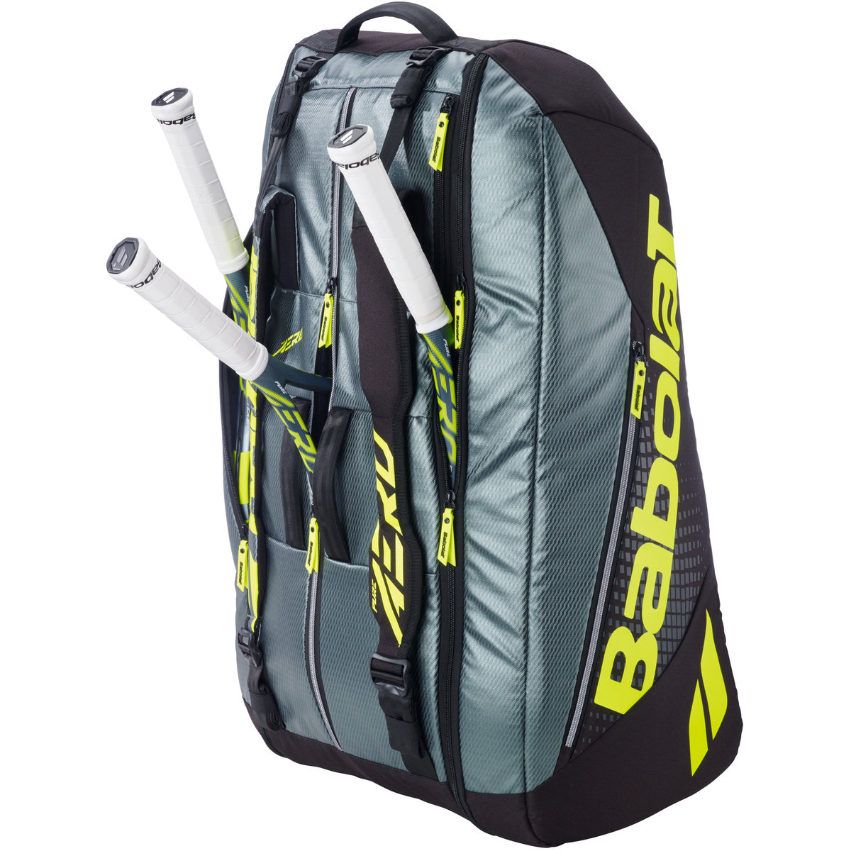 Babolat Pure Aero RH x12 Tennis Bag (Metallic Grey/Black/Fluo Yellow) (Model #751238-100MY)
