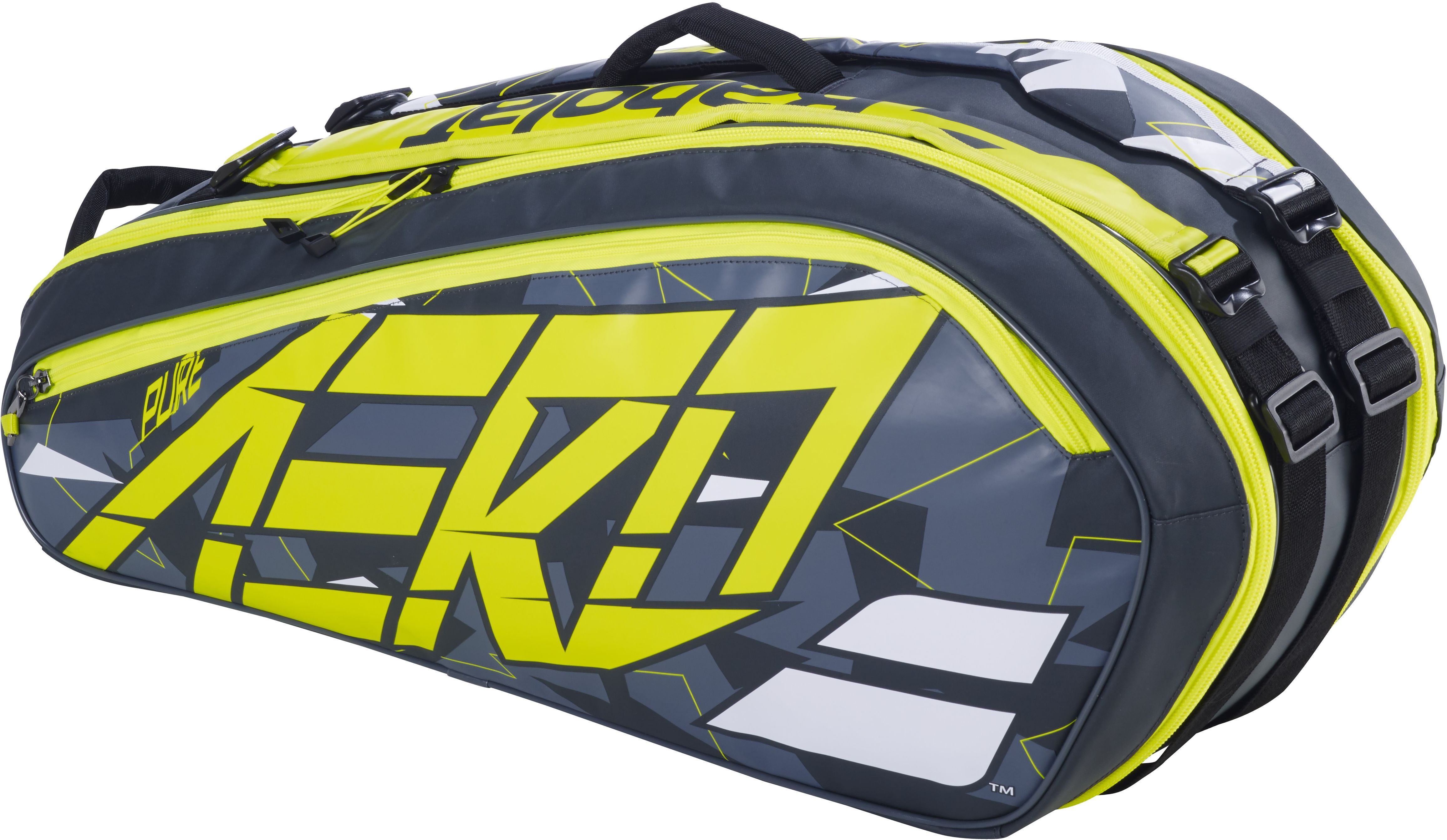 The Babolat Pure Aero Racquet Holder x6 Tennis Bag is designed to match the colors of the new Pure Aero. This versatile racquet bag can easily hold and protect 6 racquets with its ultra-resistant and waterproof exterior.