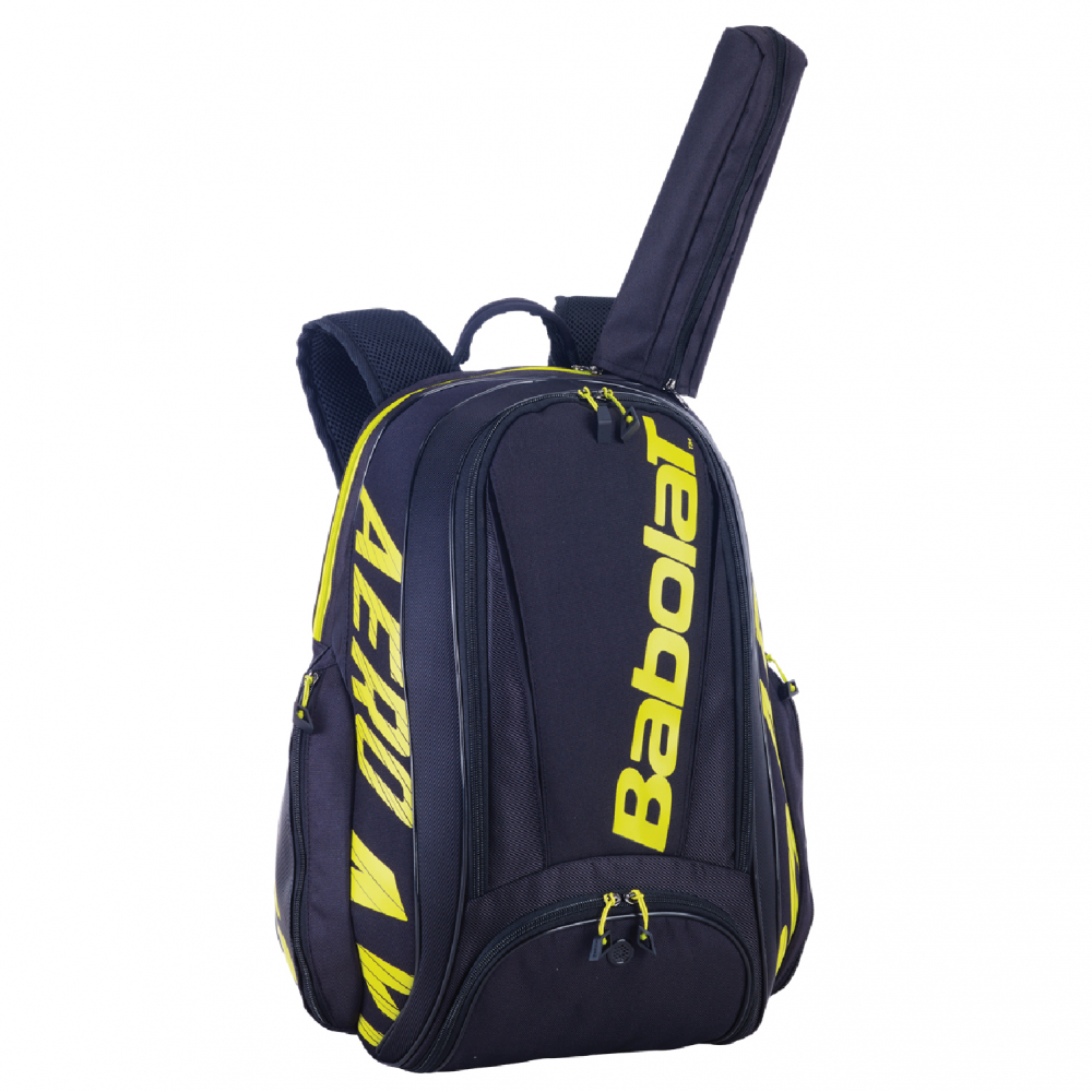 The Babolat Pure Aero black/yellow tennis backpack provides stylish and convenient storage on the go for all your essential tennis gear. This bag features a slick design with stand-out colors to match the best selling Pure Aero franchise of racquets. Easily carry up to 2 of your favorite frames as well as a pair of court shoes and a change of clothes. Ventilated sections allow for airflow when storing items after use, keeping things fresh.