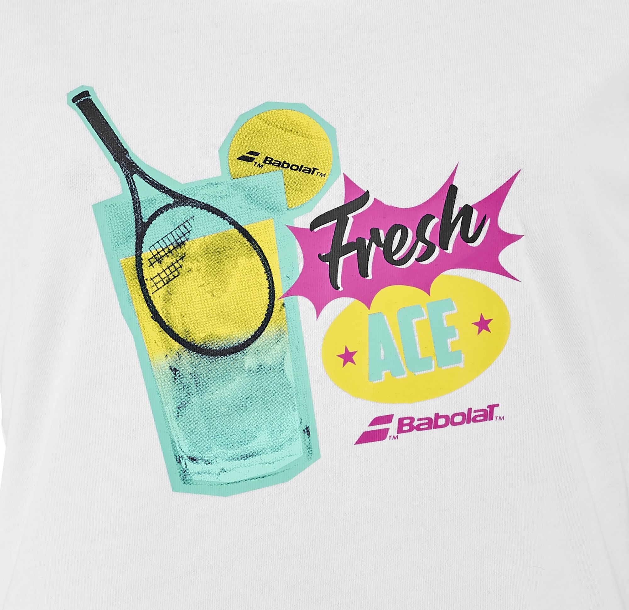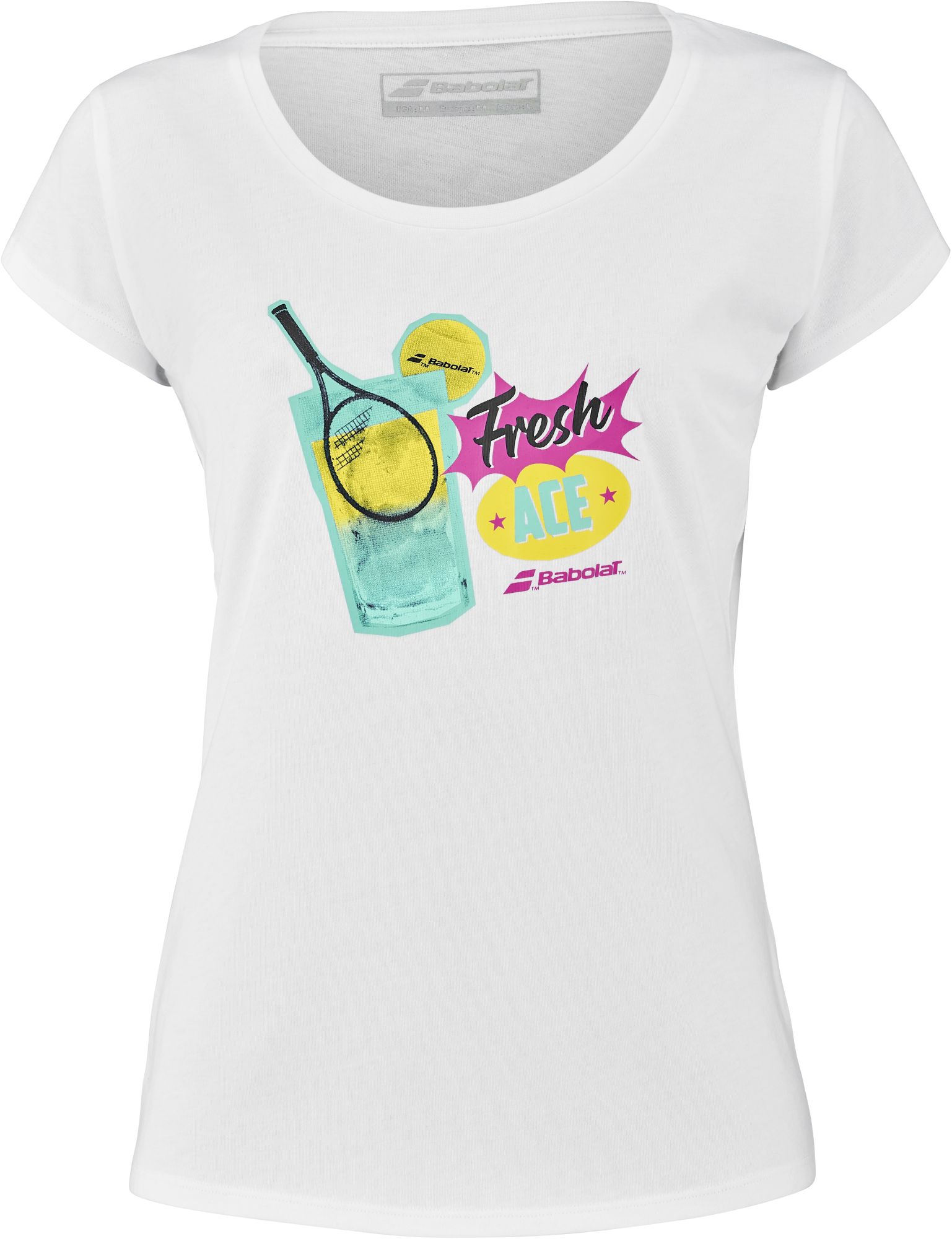 The Babolat Women’s Exercise “Fresh Ace” Message Tennis Training Tee makes a statement out on the court. The “Fresh Ace” Message Tee is for those who love tennis and want people to know about it. This fun and colorful design is just what every tennis lover needs. Color and comfort all the way. The Exercise Collection is ideal for training sessions and matches.