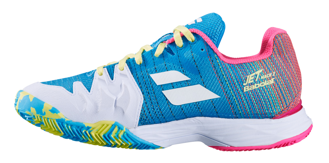 Put your competition on the defense with your agility and speed on the court in the lightweight Babolat Jet Mach II clay court tennis shoe for women.